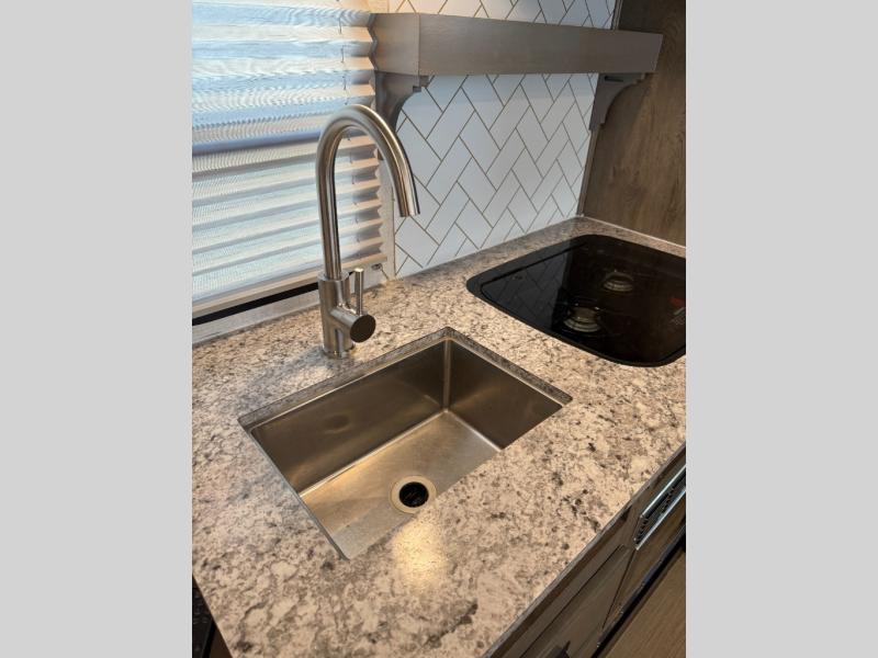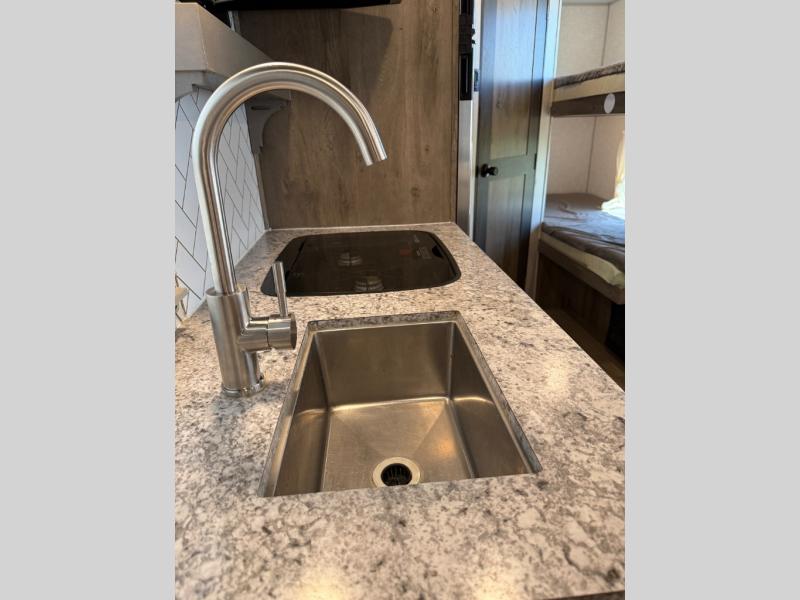 For a truly fun and relaxing camping trip, choose this Surveyor Legend Sub-4,000LB travel trailer that includes bunk beds for the kids. The queen bed at the front of the trailer is just the right size for a good night's rest. Everyone can gather at the booth dinette within the slide out for a meal together, and the dinette can also transform into an extra sleeping space at night. This trailer includes multiple overhead compartments and an exterior pass-through storage for your larger camping gear. After a long day of exploring, clean up in the full bath before heading outside to sit under the 15' electric awning with family or use the outdoor kitchen to create something delicious.