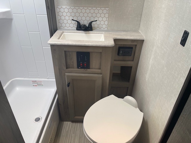 Only the Forest River Surveyor Legend travel trailer can inspire legendary adventures! The gel-coated fiberglass exterior is outfitted with front diamond plate protection, an integrated front windshield, preparations for rooftop solar power and a rear camera, and an adjustable platform step on the main entry. You'll be able to use the exterior LED speakers whenever you want to play music or a podcast, and the designer Shaw linoleum flooring is a quality base that will clean up easily if you track mud indoors. There are vented side windows in the slide outs so that you can bring in some fresh air, and each model is ready for cable/satellite.