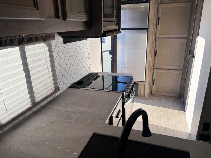 Only the Forest River Surveyor Legend travel trailer can inspire legendary adventures! The gel-coated fiberglass exterior is outfitted with front diamond plate protection, an integrated front windshield, preparations for rooftop solar power and a rear camera, and an adjustable platform step on the main entry. You'll be able to use the exterior LED speakers whenever you want to play music or a podcast, and the designer Shaw linoleum flooring is a quality base that will clean up easily if you track mud indoors. There are vented side windows in the slide outs so that you can bring in some fresh air, and each model is ready for cable/satellite.