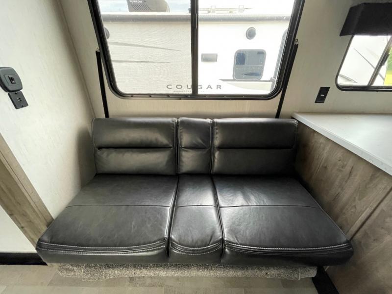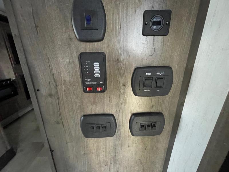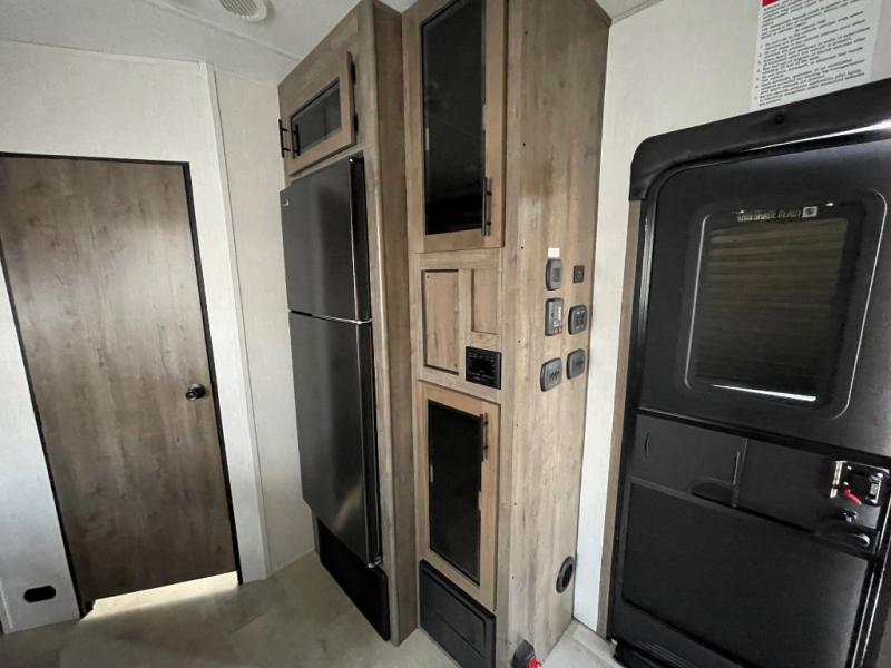 Bring along your kayaks, dirt bikes, or even a side-by-side in this toy hauler. There is 15' 10" total garage space, and a ramp door for easy unloading. Once your toys are out, enjoy lunch at the roll-over sofas, or let your guests rest on the quick set queen bed system before heading out. There is a dual entry bath to clean up in each day, and the Rogue king bed is sure to bring sweet dreams. In the morning, prepare eggs and bacon on the three burner cooktop, and the milk can go back in the 10.1 cu. ft. residential refrigerator. This model also includes a flip-up sofa for more seating and sleeping space, and you can add the optional lounge chairs too!