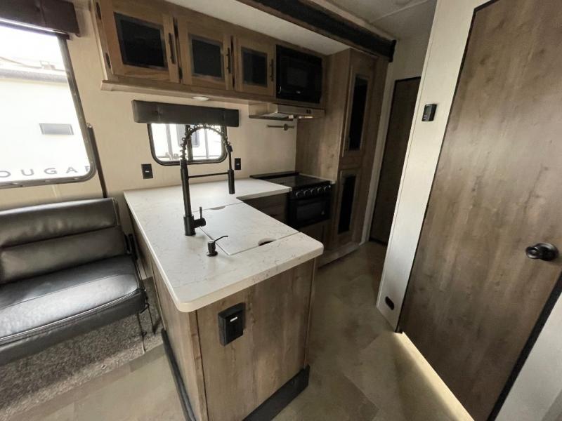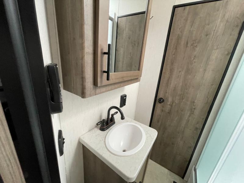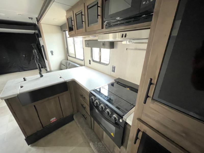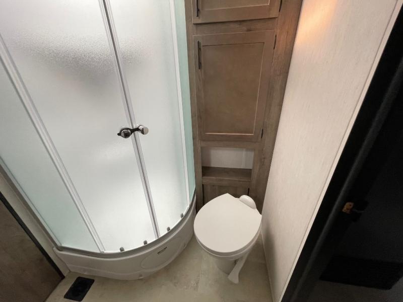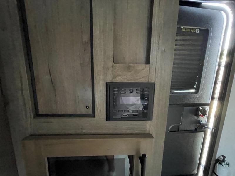 The Vengeance Rogue by Forest River is a budget-friendly toy hauler that you can really get on board with! Some of the features within the Rogue Platinum Package are the zebra shades that will keep light out, a glass shower enclosure, ultracold heated holding tank pads, and much more. There is an outside shower with hot and cold water so you can fill the dogs water bowl or wash the mud from your riding gear, and the enclosed underbelly will allow you to extend your camping season. You will love the look of the residential black stainless steel farm sink, along with the seamless countertops and LED interior lighting with accents.