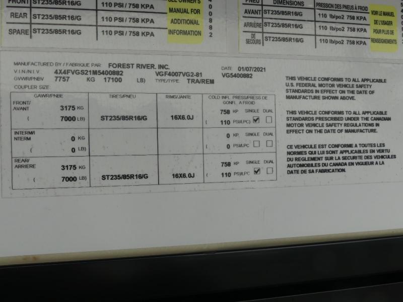 Used 2021 Forest River RV Vengeance Rogue Armored VGF4007G2 Toy Hauler Fifth Wheel