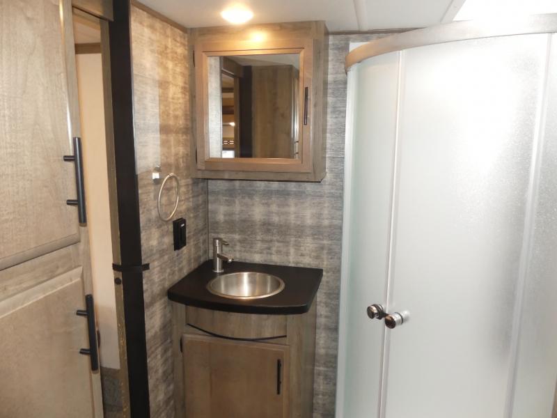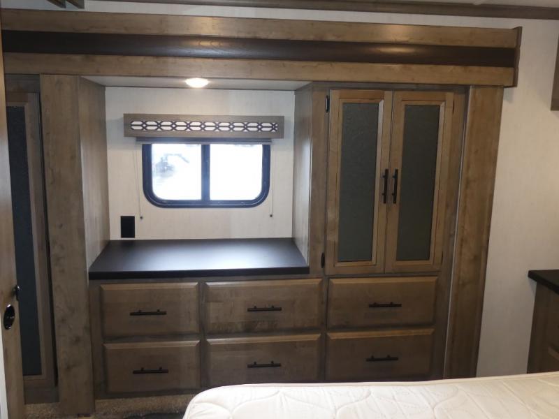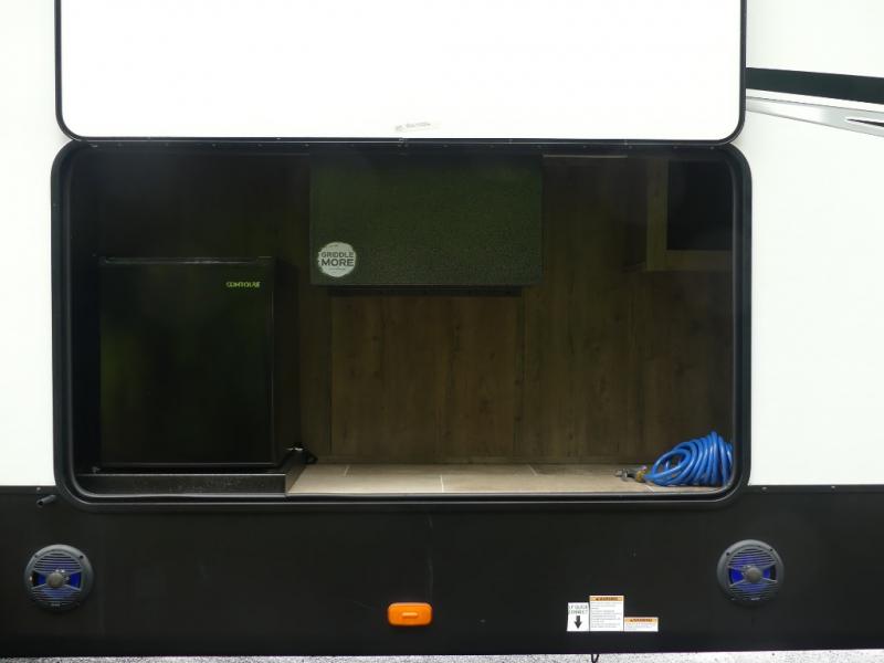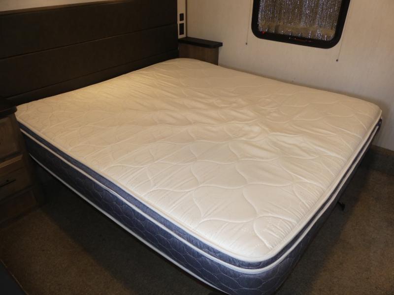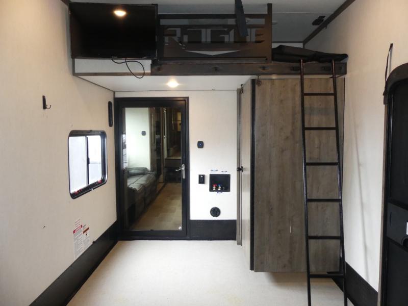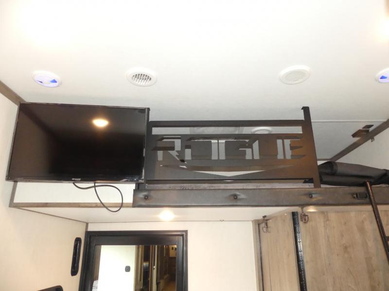 Every one of these Forest River Vengeance Rogue Armored fifth wheel toy haulers come with the features you want most at an affordable price tag! The DUR-A-POXY cargo floor has 5,000 lb. tie downs to ensure your toys will arrive safely without damaging the flooring, plus the 8' ramp door makes it easy to load them. A 15,000 BTU air conditioner will keep you cool even on the hottest summer days. An enclosed and heated underbelly keeps your unit's vitals protected and a central docking station makes life a little easier. The Rogue Armored package comes with a six point leveling system, a comfort plus adjustable powered king bed system, and a ramp door patio system. You can be sure to find one that fits your needs!