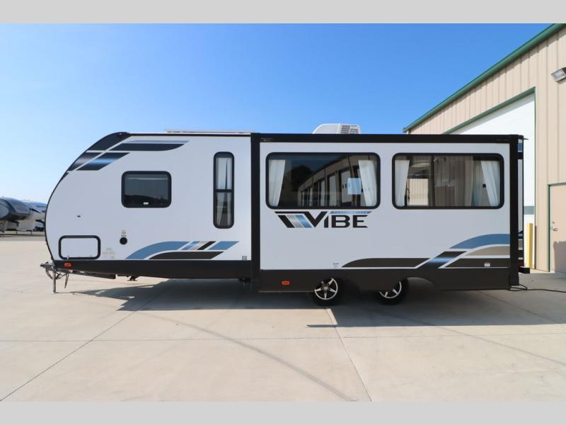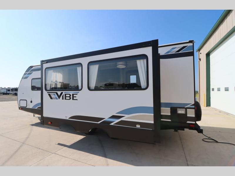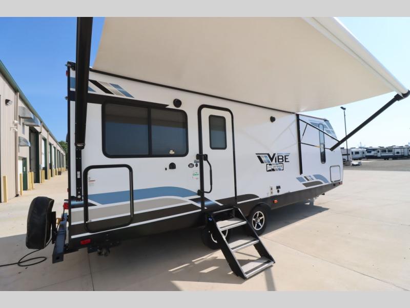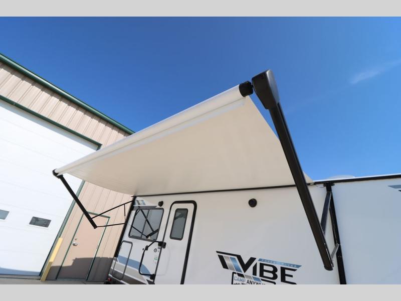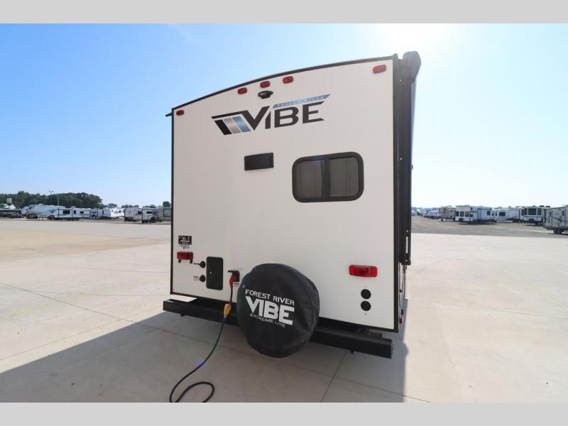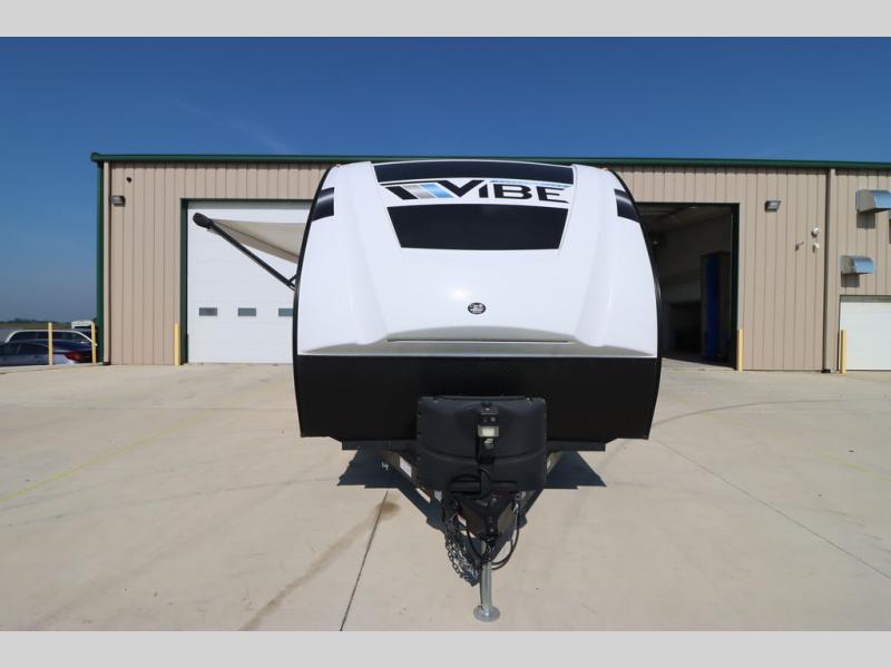 Each Vibe travel trailer by Forest River includes Hyper Lyte construction and a durable laminated "Aluma Frame" for years of use. The heated and enclosed underbelly allows you to extend your camping season, and the LED-lit exterior speakers will keep the party going as you grill outdoors and visit with family. Inside, you'll find LED lights to keep everything bright and open, a Bluetooth stereo, roller shades for your privacy, and many more amenities per region. These models also include cable and satellite prep and a digital TV antenna with a booster so you can stay connected to the outside world if you choose. Make the easy choice and choose a Vibe travel trailer today!