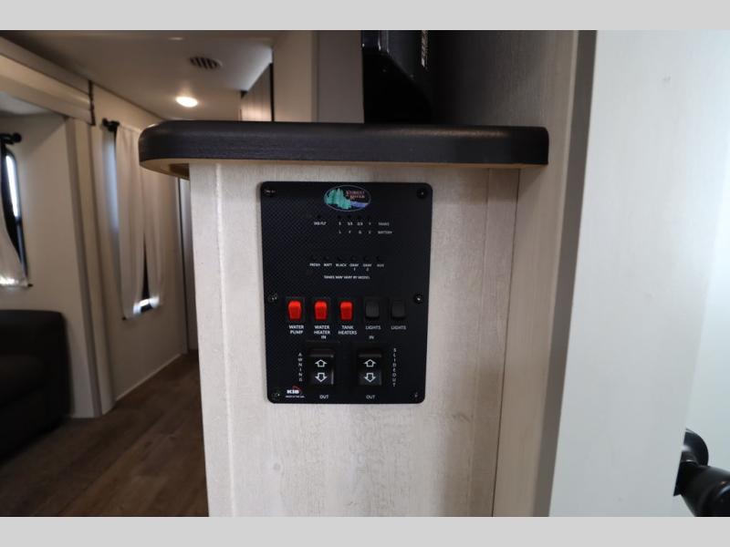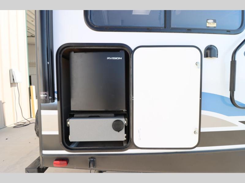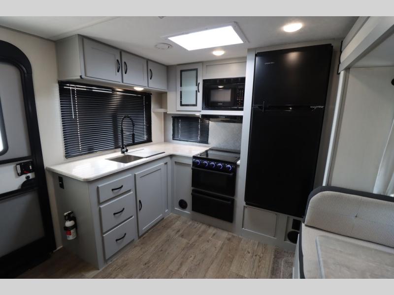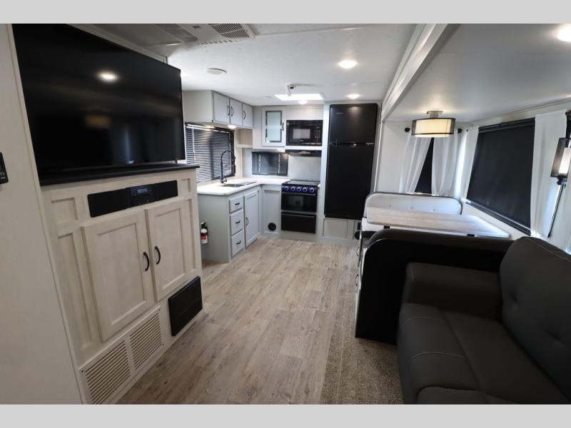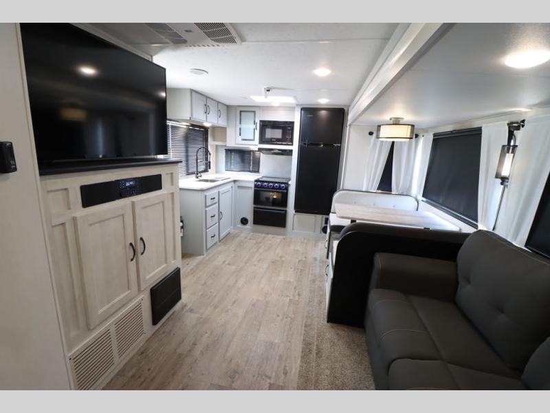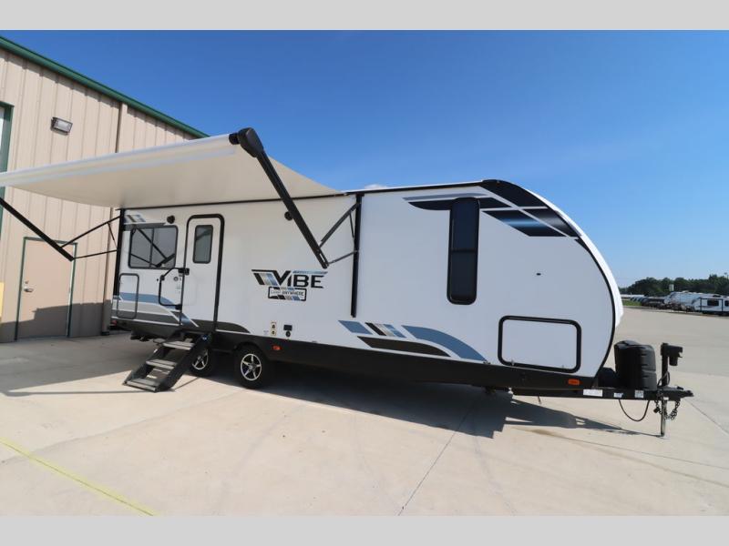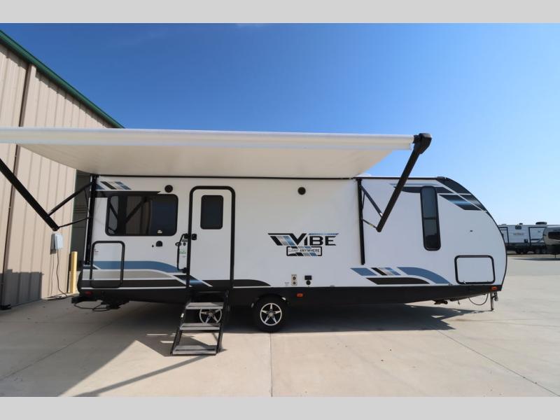 Each Vibe travel trailer by Forest River includes Hyper Lyte construction and a durable laminated "Aluma Frame" for years of use. The heated and enclosed underbelly allows you to extend your camping season, and the LED-lit exterior speakers will keep the party going as you grill outdoors and visit with family. Inside, you'll find LED lights to keep everything bright and open, a Bluetooth stereo, roller shades for your privacy, and many more amenities per region. These models also include cable and satellite prep and a digital TV antenna with a booster so you can stay connected to the outside world if you choose. Make the easy choice and choose a Vibe travel trailer today!