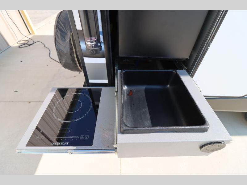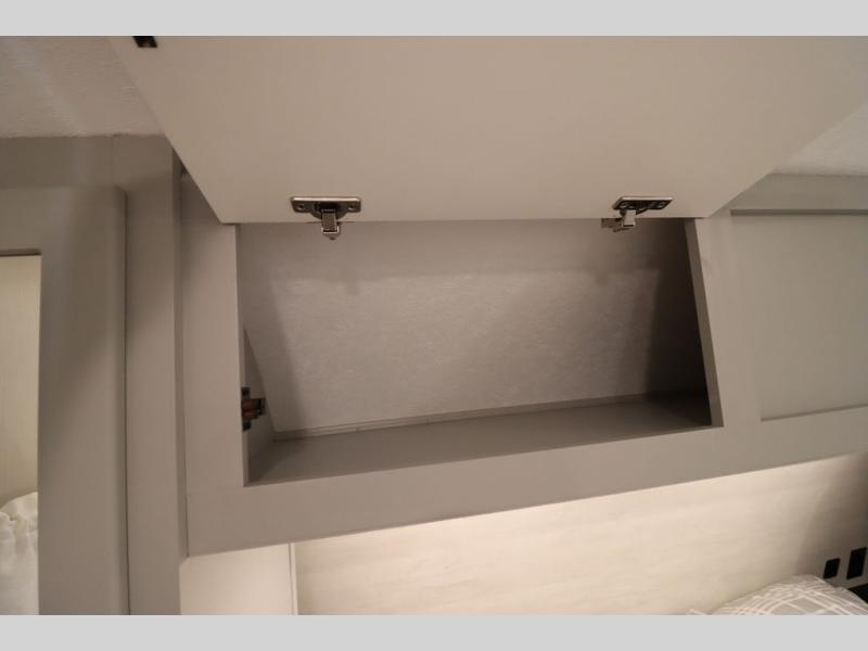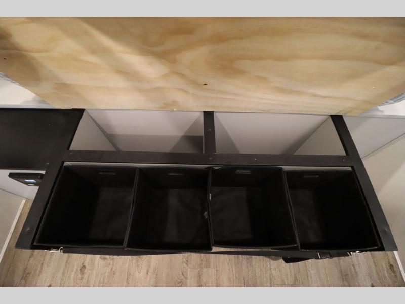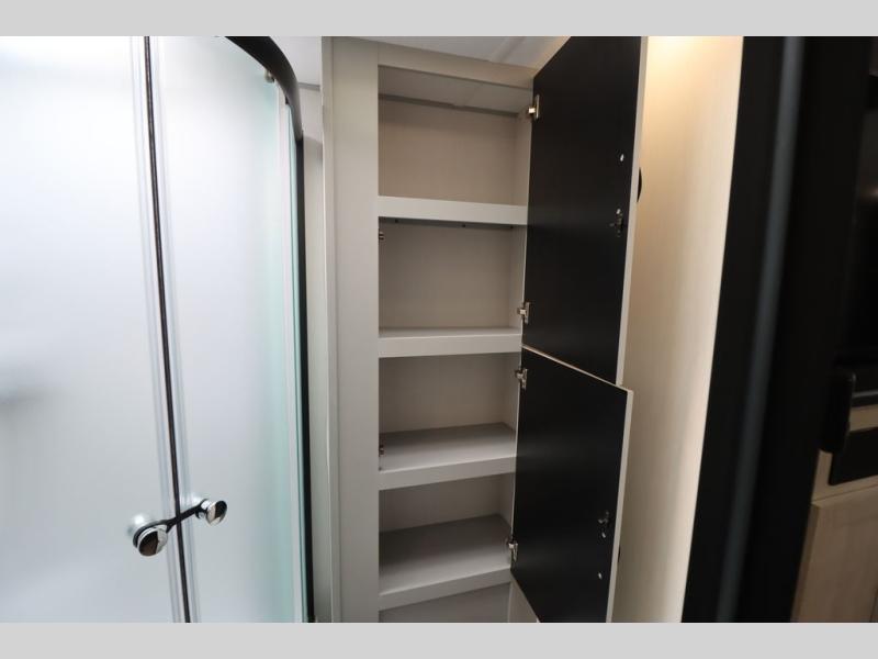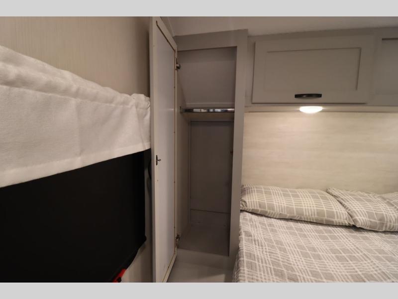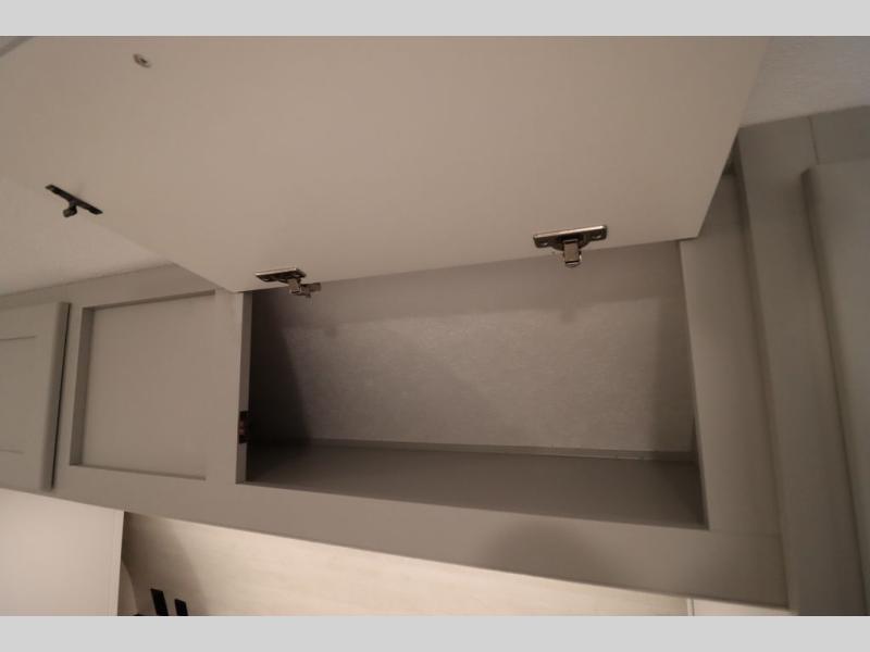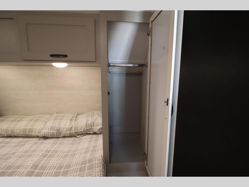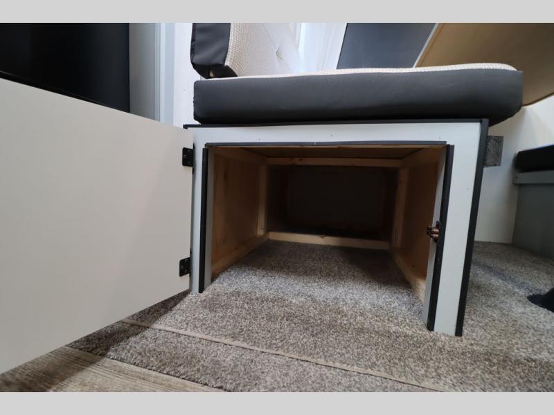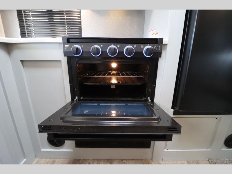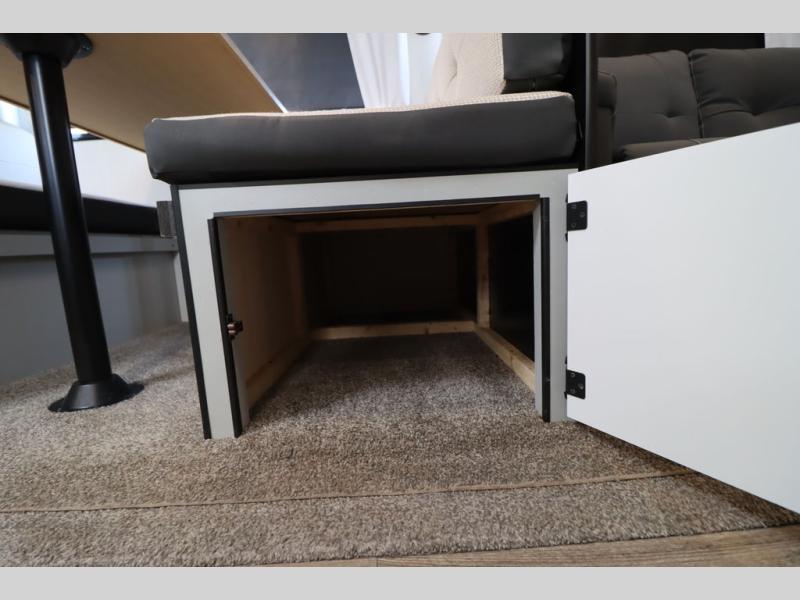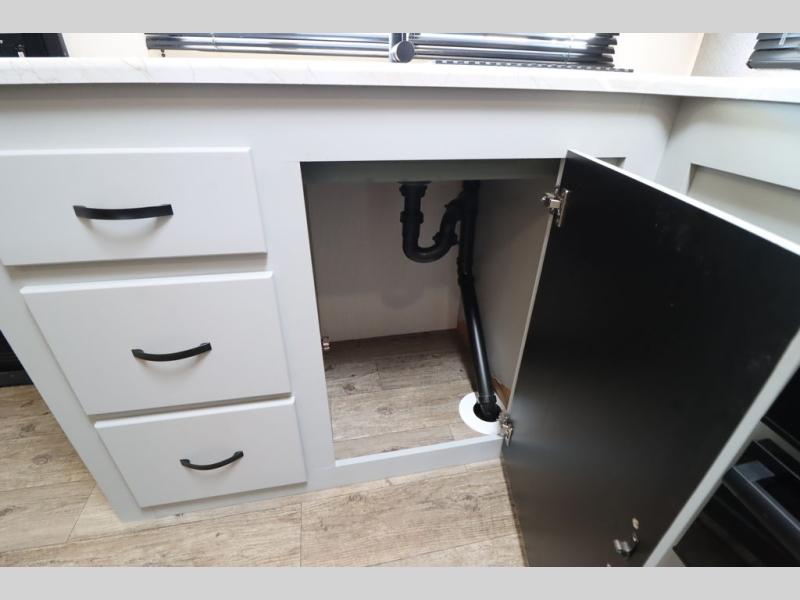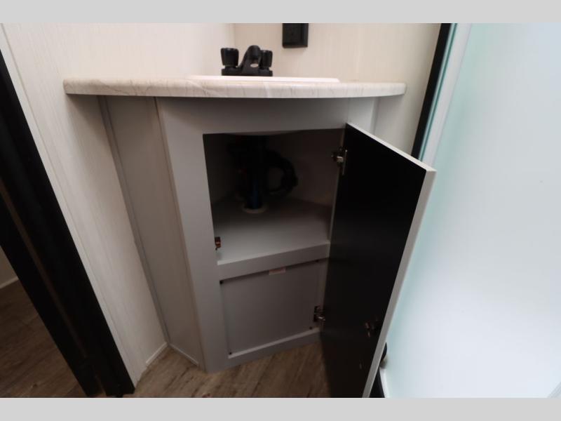 Your family will enjoy every camping trip in this cozy travel trailer. Whether you're cooking on the outside kitchen or indoors in the rear kitchen, you will have all the appliances needed for yummy meals each day. The large slide out with the booth dinette and sofa provide comfortable seating space during the day, and this area can become the kids' sleeping space at night. You and your spouse can take the front private bedroom with a queen bed and dual wardrobes for your clothes. And the full bath is conveniently located in the middle of the trailer for easy access each day. This model also includes tons of storage space for all your belongings, including an exterior large pass-through storage, and an interior walk-in pantry with shelves to store dry goods and snacks!