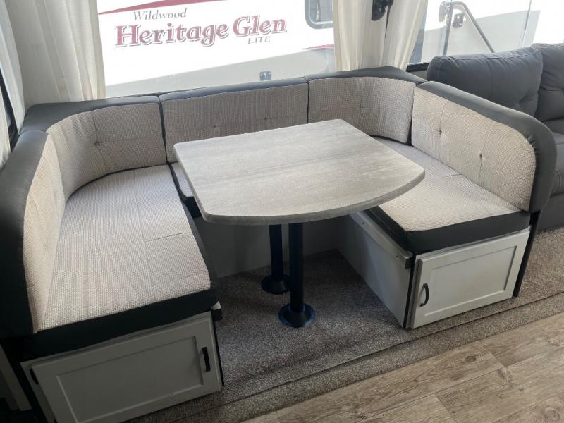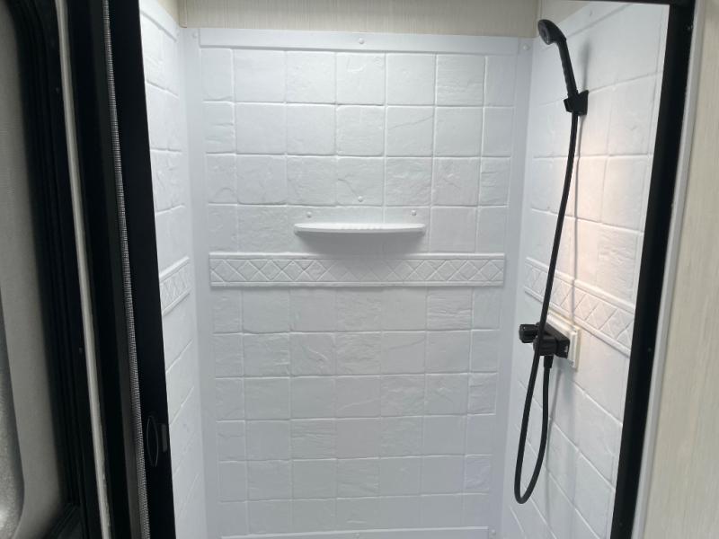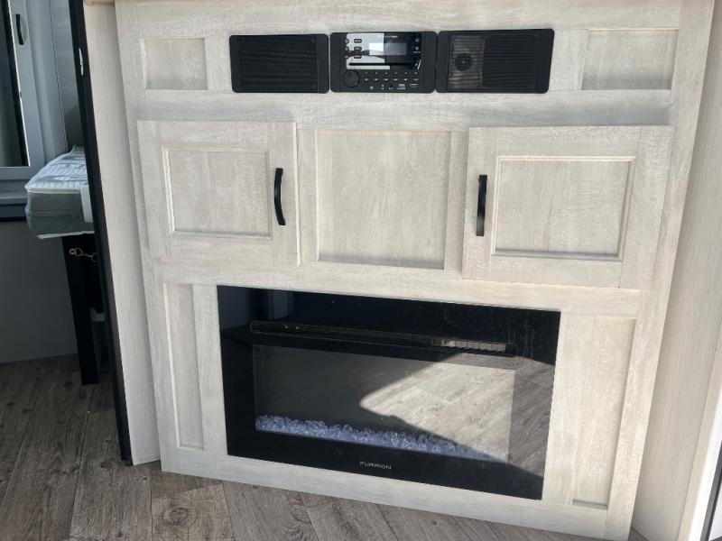 Are you looking to upgrade your RV to a trailer with more space and more features? Look no further than this Vibe that can sleep ten people each night. The kids are sure to claim the double-size bunks to themselves, while the adults take the front private bedroom with the queen bed. You will find even more sleeping space on the U-shaped dinette and sleeper sofa within the large slide out. After a day outdoors at the lake, get cleaned up in the full bath that includes a 40" x 30" walk-in shower and its own exterior entry door for convenience. There is so much more to love about this model, like the fireplace and entertainment center, the oversized panoramic windows, and the large pass-through storage for all your gear!