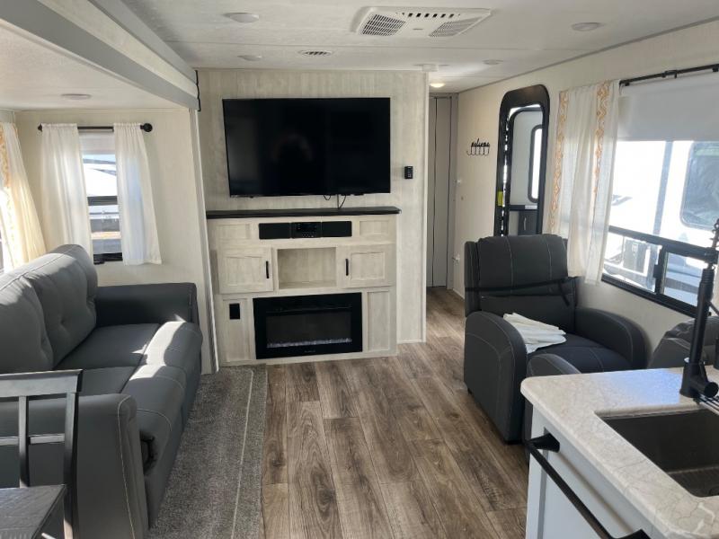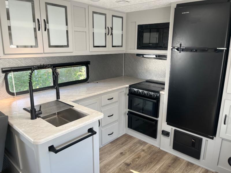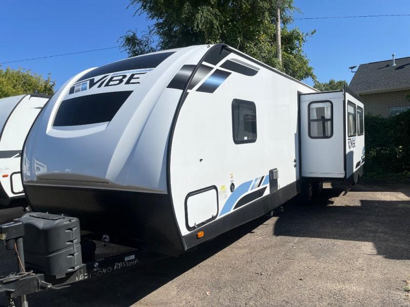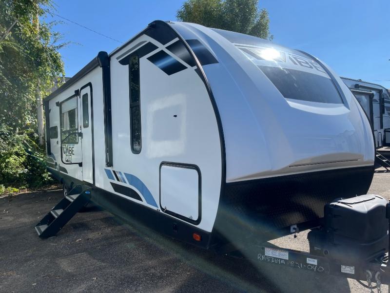 Each Vibe travel trailer by Forest River includes Hyper Lyte construction and a durable laminated "Aluma Frame" for years of use. The heated and enclosed underbelly allows you to extend your camping season, and the LED-lit exterior speakers will keep the party going as you grill outdoors and visit with family. Inside, you'll find LED lights to keep everything bright and open, a Bluetooth stereo, roller shades for your privacy, and many more amenities per region. These models also include cable and satellite prep and a digital TV antenna with a booster so you can stay connected to the outside world if you choose. Make the easy choice and choose a Vibe travel trailer today!