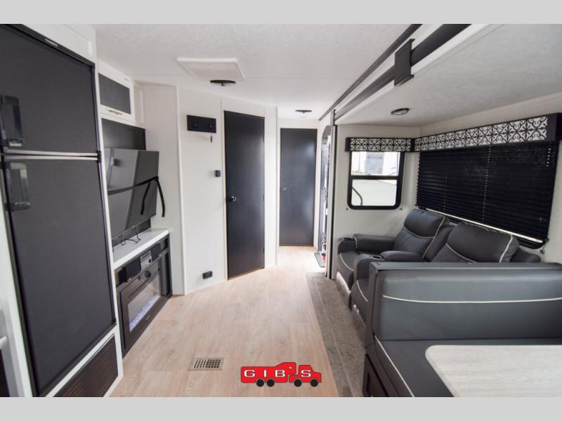 There is much to love in this travel trailer! From the rear kitchen layout featuring a walk-in pantry for you to bring along everyone's favorite snacks, and the large amount of counter space to prepare your meals. The front private bedroom with a king bed includes shirt closets on either side so you don't have to live out of your suitcases for the weekend. The entertainment center features a 50" TV for you to watch your favorite movies as you relax on the tri-fold sofa, and the 20' electric awning is a great place to breath in some fresh air while staying protected from the sun! And don't forget about the pass-through storage and the additional outside storage to bring all your hiking gear!