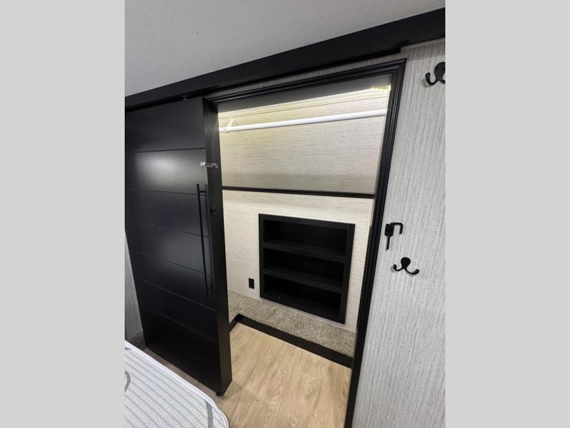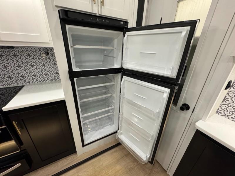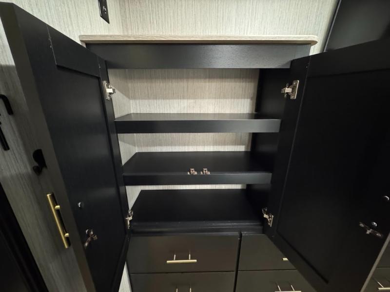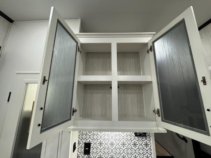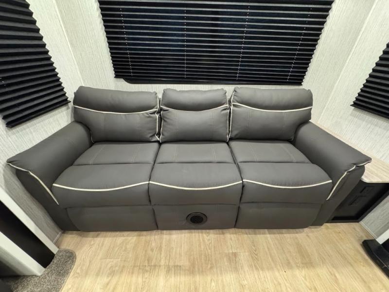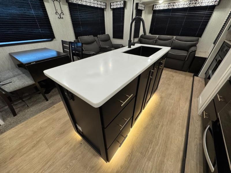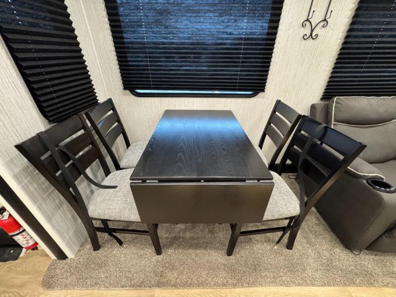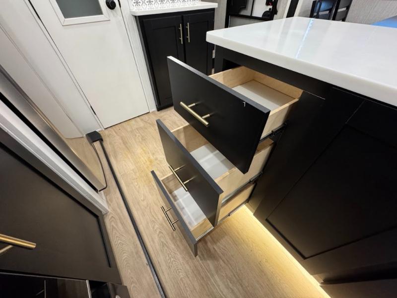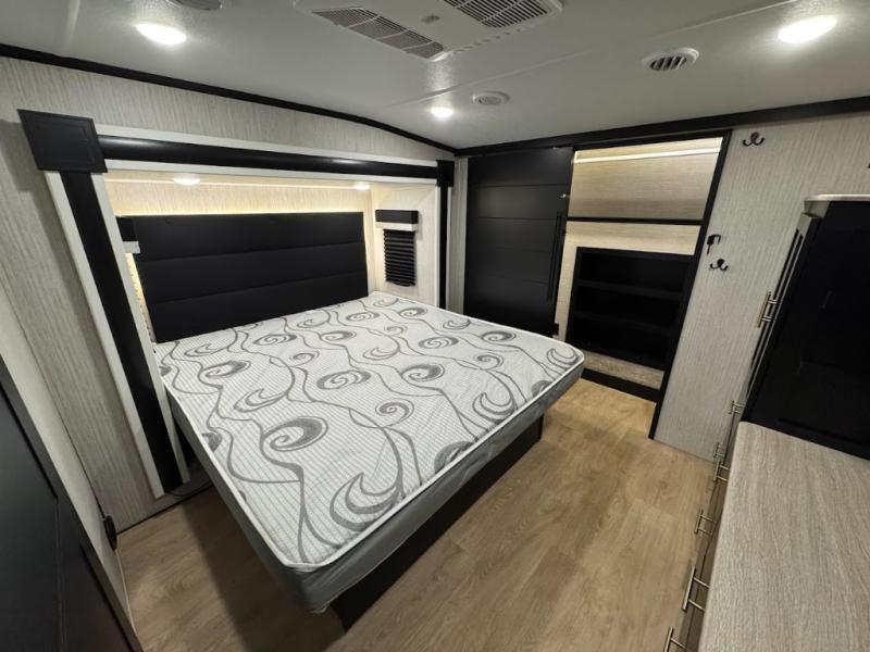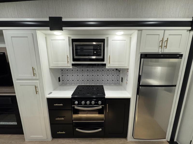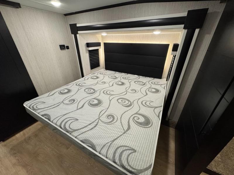 Experience the camping lifestyle in complete comfort with this fifth wheel in tow! Once you step foot inside you will be met with a spacious living space, residential features, and comfortable furniture arrangements. There are many convenient features such as a walk-in pantry, a large kitchen island, pus tons of overhead space for your dishes and kitchen knickknacks. After a day outdoors, head to the rear living area to relax on the 80" hide-a-bed sofa or the 60" theater seating. When it's time to call it a night, the front private bedroom will be your own oasis away from it all. Here, you'll find a slide out king bed, plus a large wardrobe that includes convenient shoe storage and a space to add an optional washer and dryer!