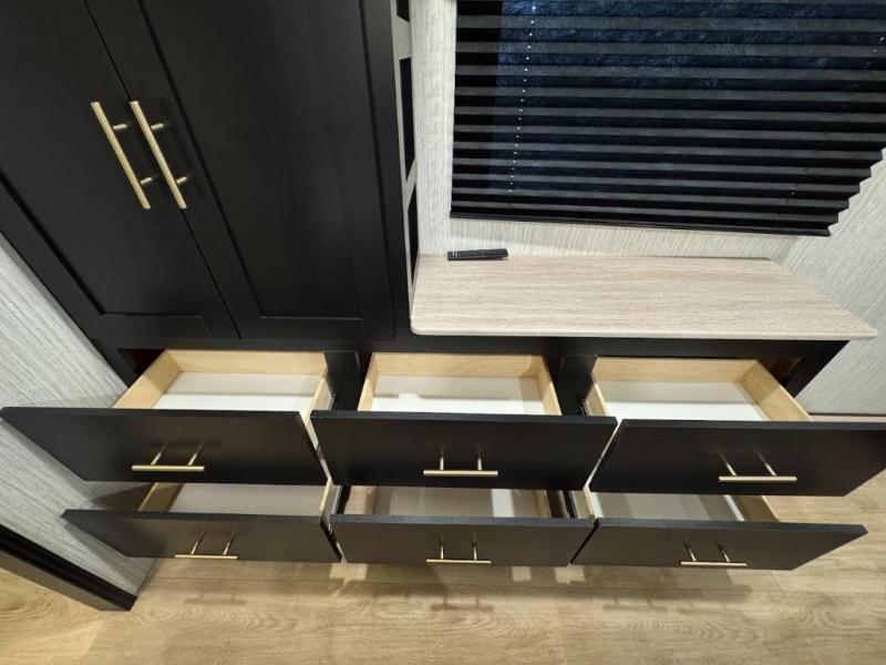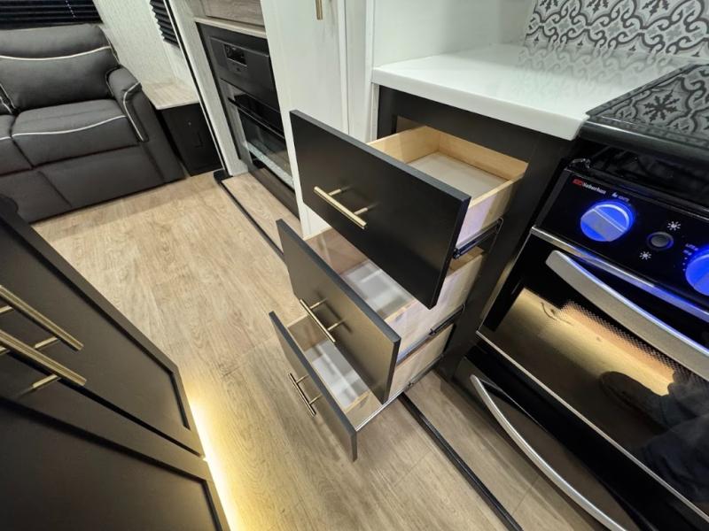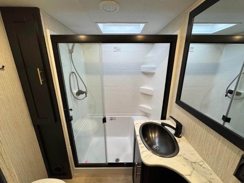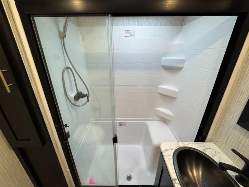 With each Wildcat fifth wheel by Forest River you will appreciate the Road Armor suspension kit with Dexter axles for smooth towing on tougher roads, and a durable construction that includes a Dicor Tufflex PVC roof membrane. The high-density block foam insulation in the sidewalls, along with the residential and thermofoil insulation in the floor and roof help to extend your camping season for year around fun. The exterior includes many convenient features such as, a full pass-through storage with forced air heat, a docking station with an outdoor shower, plus a power awning with LED lights. There are even three models with dual power awnings for maximum shade and comfort. Inside you will enjoy solid surface countertops, a 2-IN-1 range and oven, modern black and white interior decor, plus UBS ports on each side of the bed, as well as a cellphone, CPAP, and tablet station!