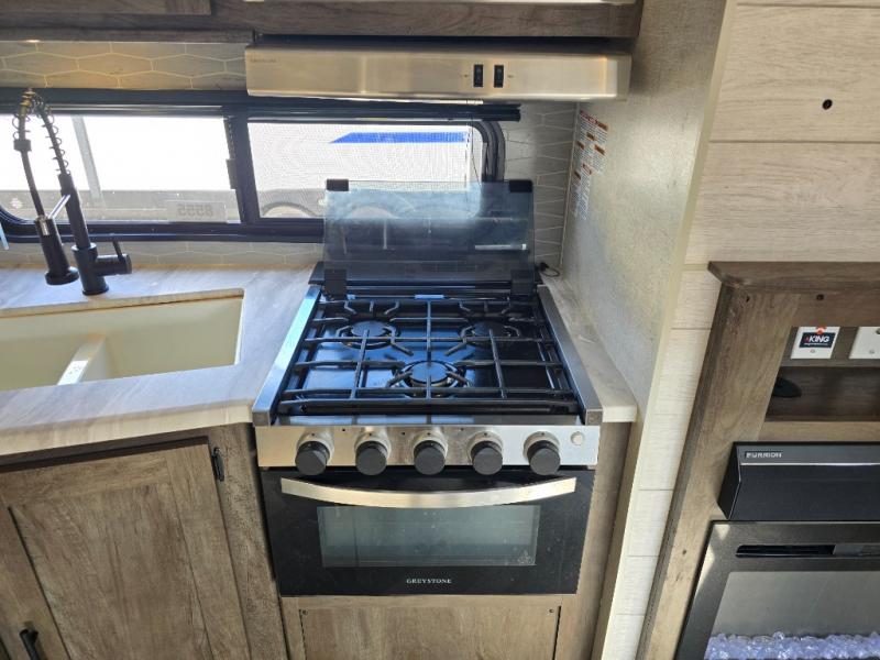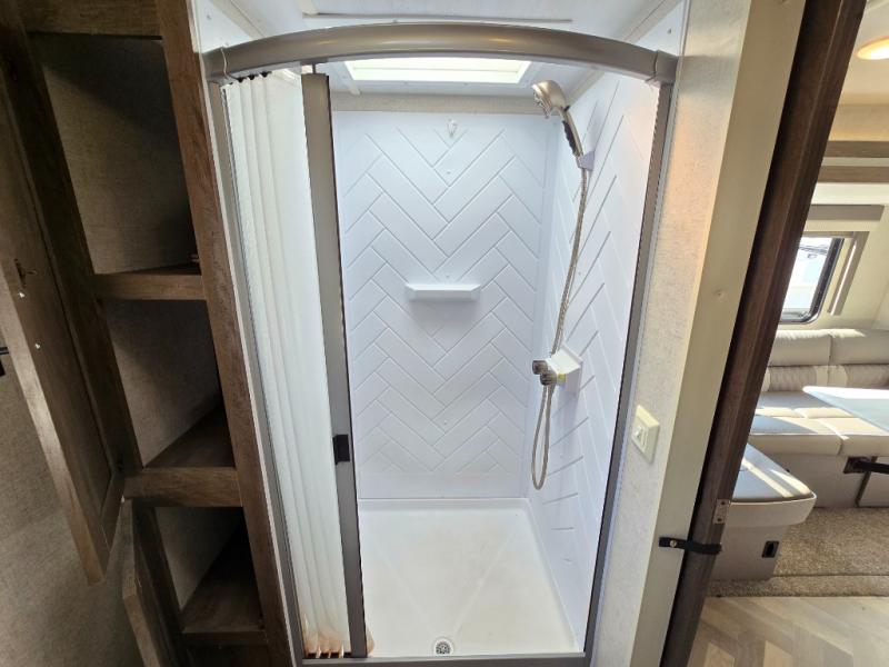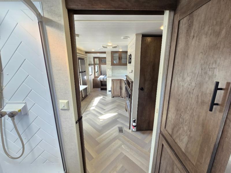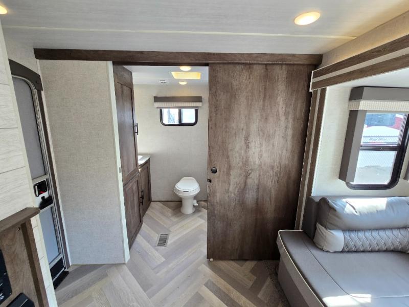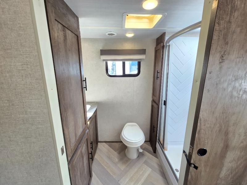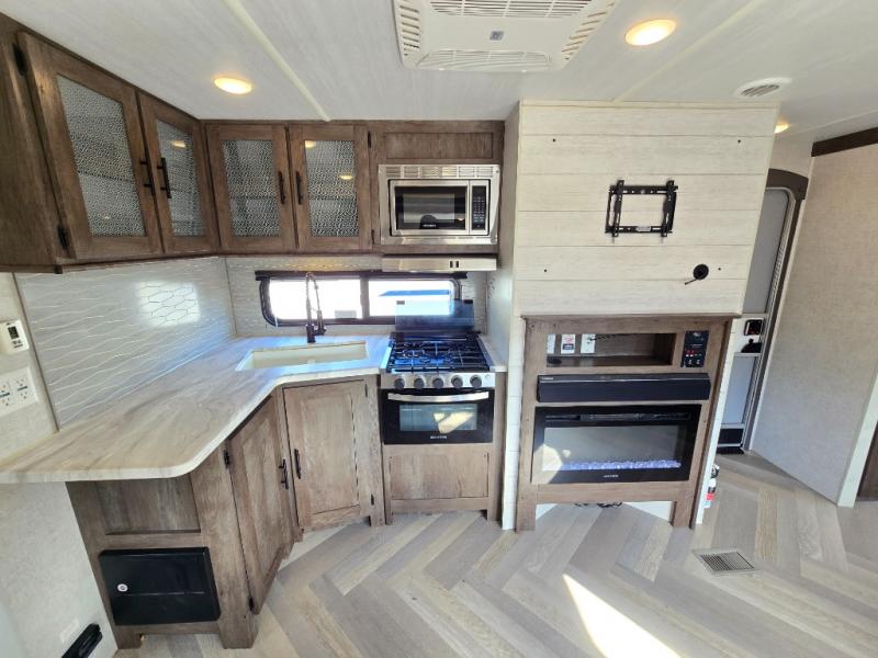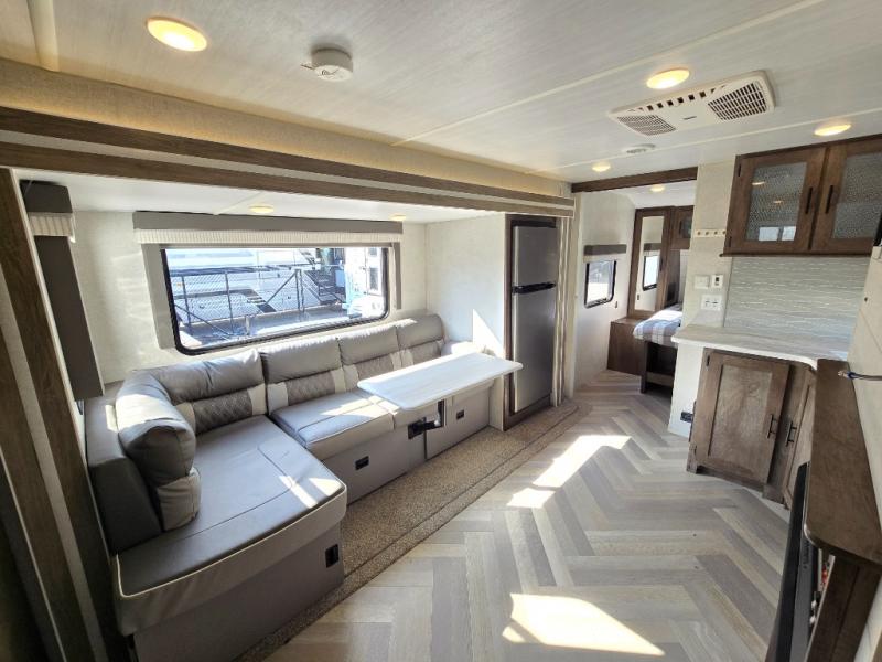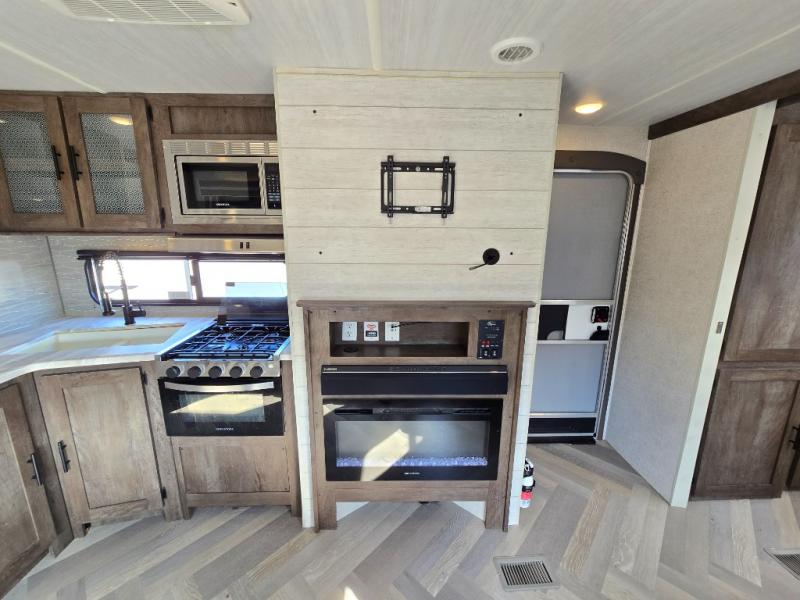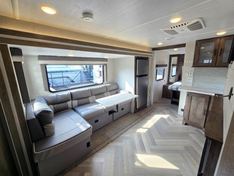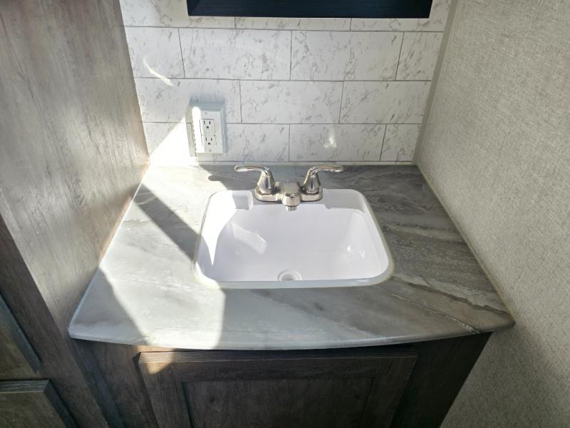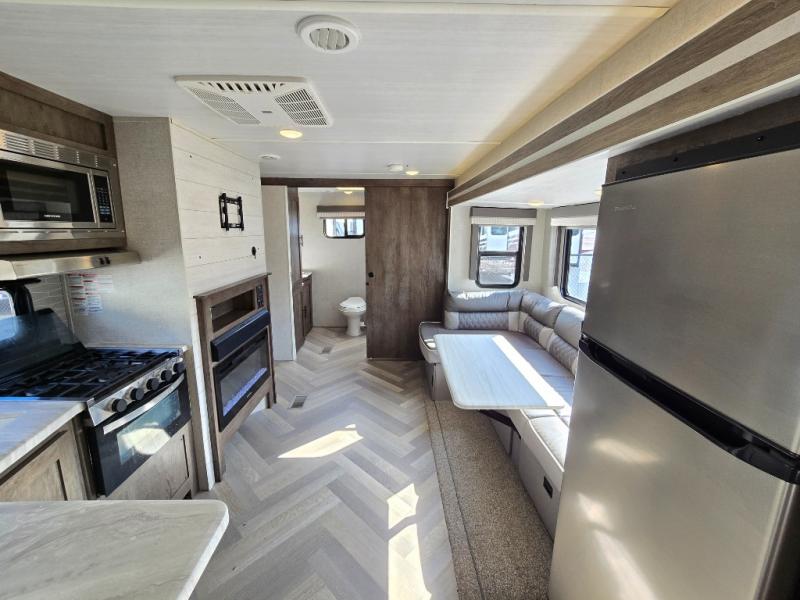 Forest River offers you the highest quality and the best components in its Wildwood travel trailer! The fully walkable one-piece roof is ultra reliable, and the rest of the construction is just as dependable with the powder-coated I-beam frame, cambered chassis, R-7 fiberglass insulation, nitrogen-filled tires, and triple-seal slide-out system. The Wildwood is not only full of quality, but it is also full of style with its herringbone luxury vinyl flooring, shiplap wall board, upgraded designer furniture, high-gloss exterior metal, and seamless countertops. The Wildwood also comes with some extra features that will make your life more comfortable, like the exterior speakers with blue LED light, the tablet-compatible USB ports, the residential vanity with shower caddy, and true stabilizer jacks with JT's Strong Arm.