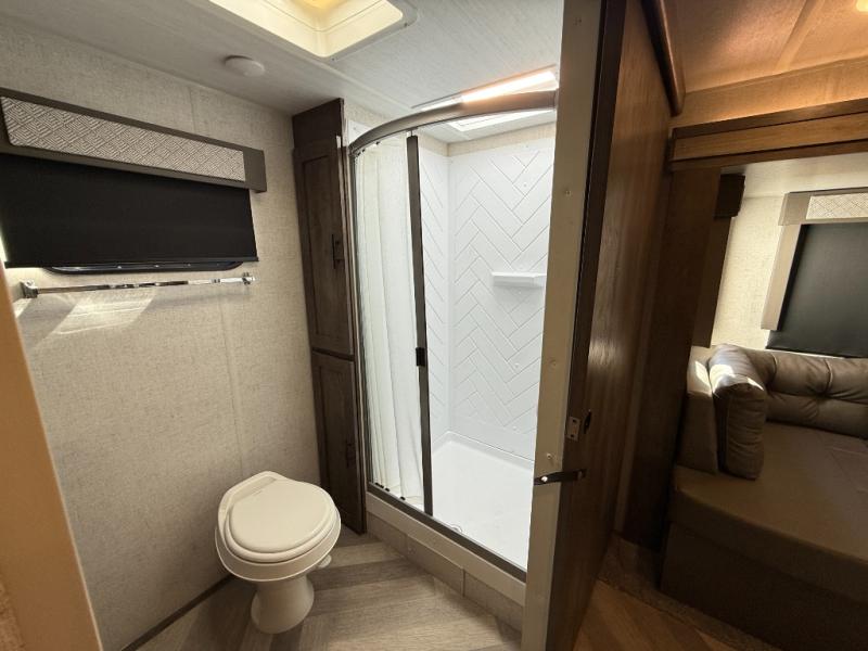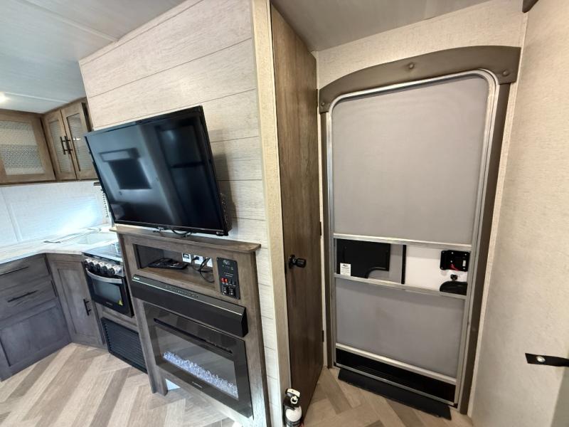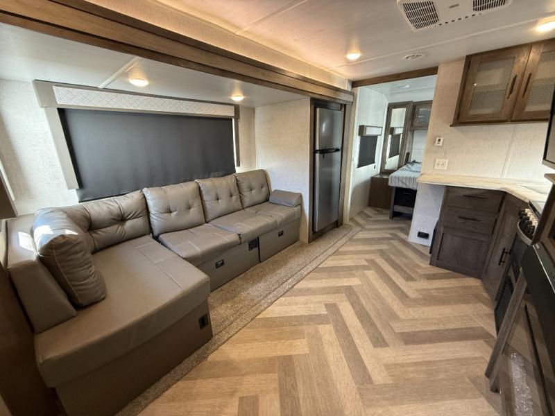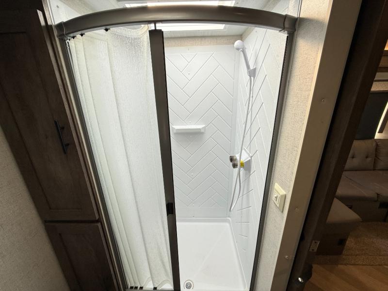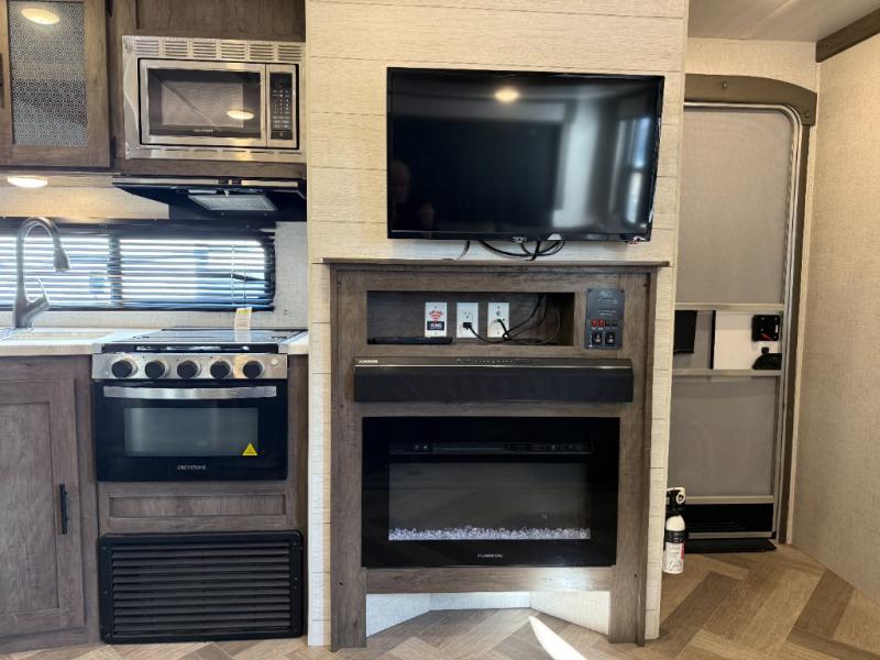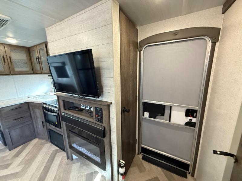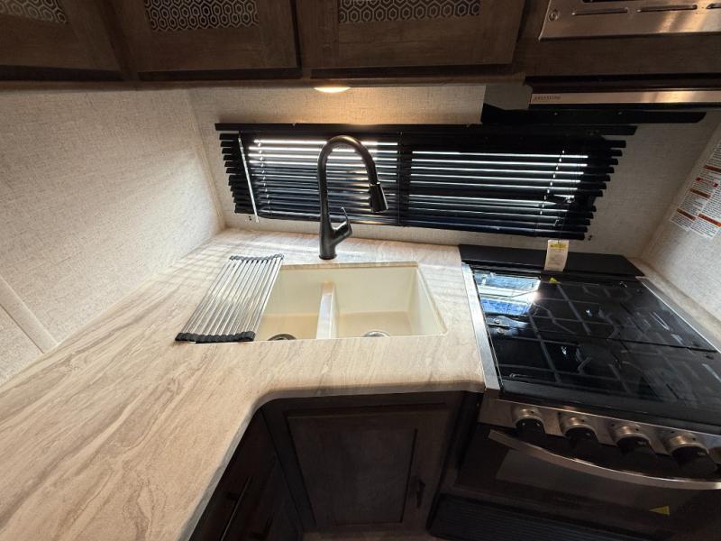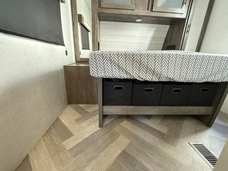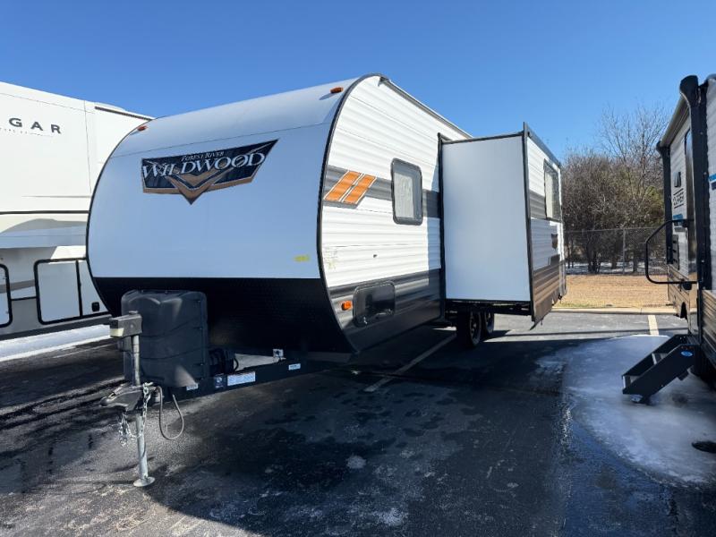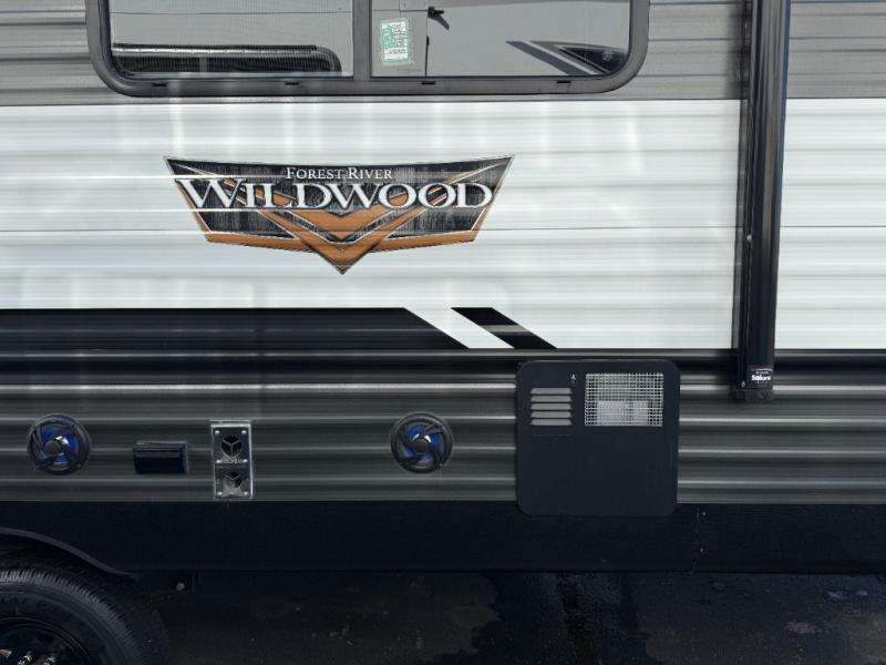 Forest River offers you the highest quality and the best components in its Wildwood travel trailer! The fully walkable one-piece roof is ultra reliable, and the rest of the construction is just as dependable with the powder-coated I-beam frame, cambered chassis, R-7 fiberglass insulation, nitrogen-filled tires, and triple-seal slide-out system. The Wildwood is not only full of quality, but it is also full of style with its herringbone luxury vinyl flooring, shiplap wall board, upgraded designer furniture, high-gloss exterior metal, and seamless countertops. The Wildwood also comes with some extra features that will make your life more comfortable, like the exterior speakers with blue LED light, the tablet-compatible USB ports, the residential vanity with shower caddy, and true stabilizer jacks with JT's Strong Arm.