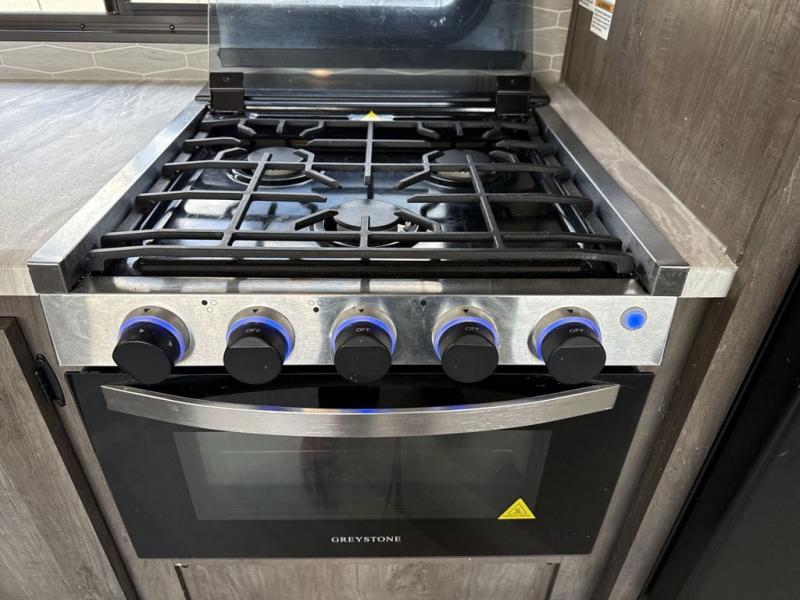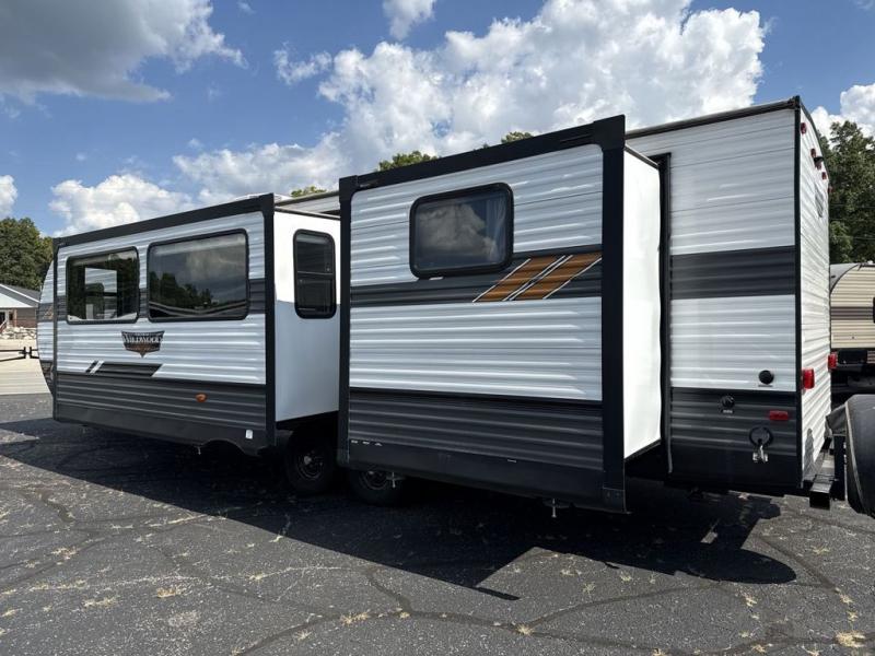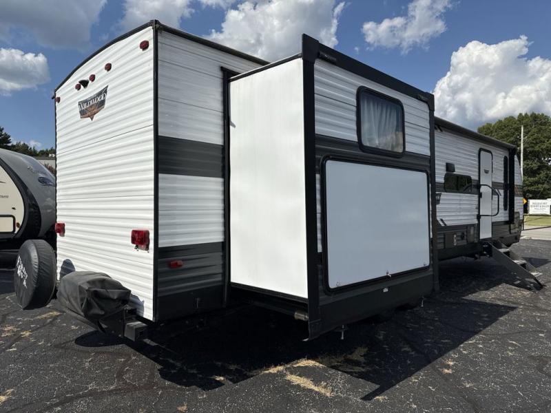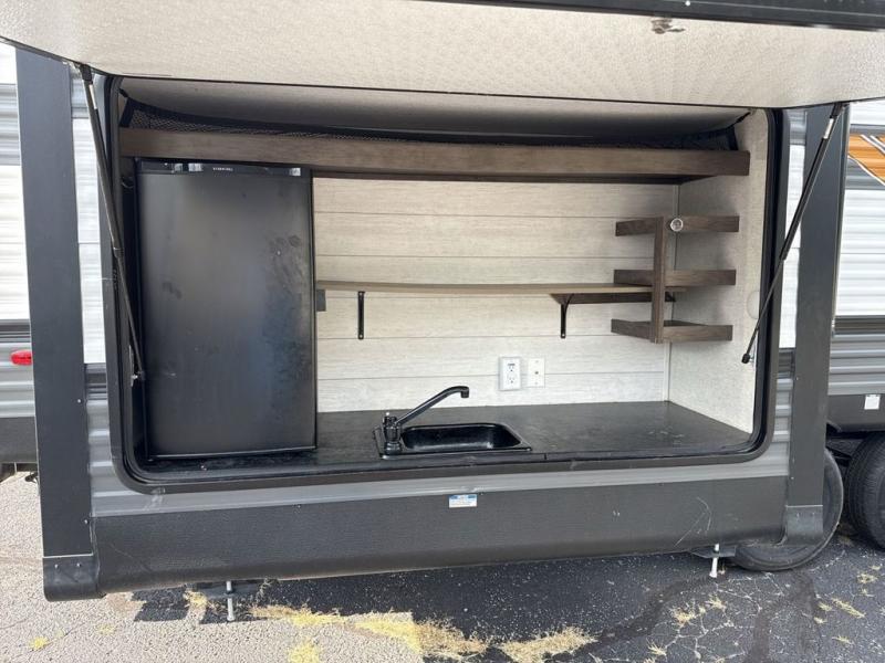 With this triple-slide Wildwood travel trailer, everyone can have their own space! The private bunkhouse features dual opposing slides that provide tons of space for the kids to play. The large slide in the living area opens up the whole space, and here you'll find a Versa Lounge with a U-shaped dinette and sofa which is perfect for meal times and relaxing. You'll love the front private bedroom with a queen bed, and everyone will appreciate the full bath. The chef of the family can cook a meal on the three-burner range, or you can prepare hamburgers on the outside kitchen you are sure to love!