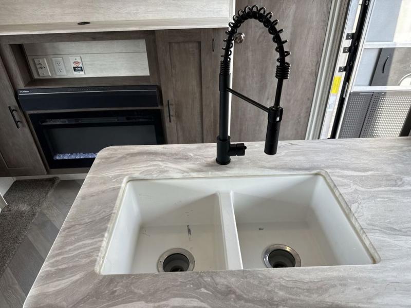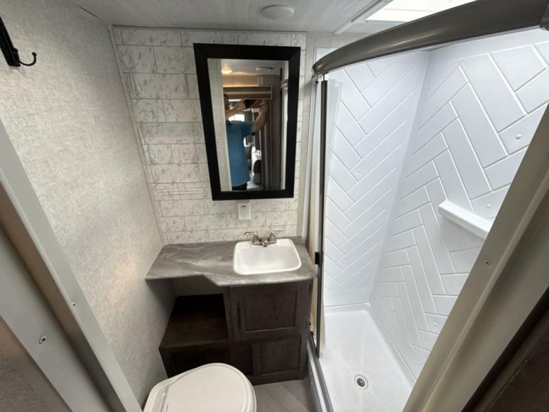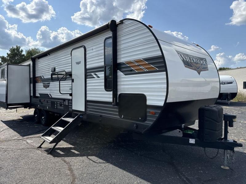 Forest River offers you the highest quality and the best components in its Wildwood travel trailer! The fully walkable one-piece roof is ultra reliable, and the rest of the construction is just as dependable with the powder-coated I-beam frame, cambered chassis, R-7 fiberglass insulation, nitrogen-filled tires, and triple-seal slide-out system. The Wildwood is not only full of quality, but it is also full of style with its herringbone luxury vinyl flooring, shiplap wall board, upgraded designer furniture, high-gloss exterior metal, and seamless countertops. The Wildwood also comes with some extra features that will make your life more comfortable, like the exterior speakers with blue LED light, the tablet-compatible USB ports, the residential vanity with shower caddy, and true stabilizer jacks with JT's Strong Arm.