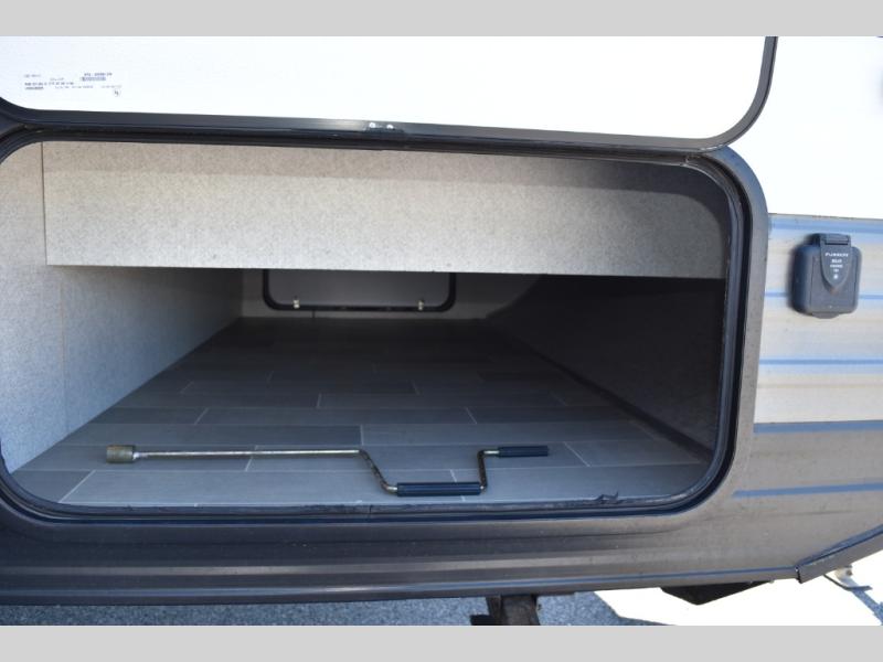 The Forest River Wildwood FSX travel trailer and toy hauler comes with a Best-In-Class Package that truly is the best! Some of the features you'll find in this package are the enclosed Accessibelly, the large-capacity 11-cubic foot refrigerator, the seamless countertops, the outside hot/cold shower, the power awning with adjustable legs and LED lights, and the preparation for Wi-Fi. You'll also notice that the Wildwood FSX provides you with exceptional views of your surroundings with its largest-in-class opening panoramic windows, and the herringbone pattern luxury extra-thick vinyl flooring is an excellent base that will be easy to keep clean. Some other notable features are the TUFFCOAT scratch-resistant exterior paint, the tablet-compatible USB ports, and the residential high-rise kitchen faucet.