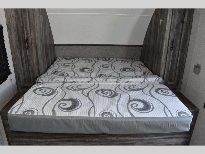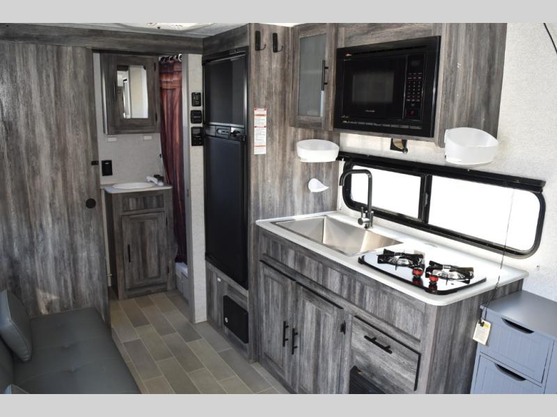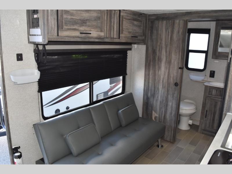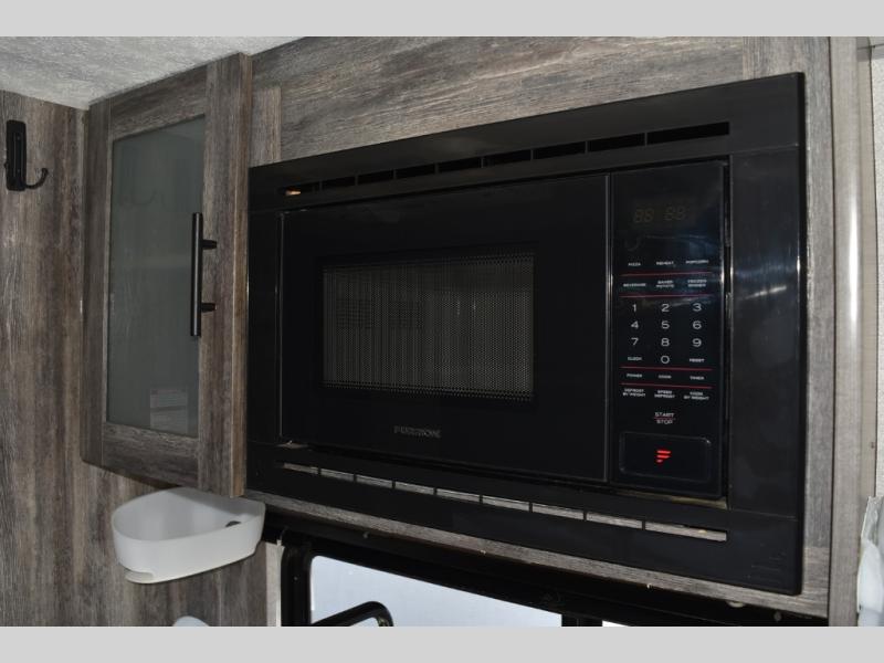 Let all of your adventures be full of fun and excitement with this Wildwood FSX travel trailer! Keep lots of gear stored away in the exterior pass-through storage compartment so that you can keep the interior free from clutter. The bathroom linen closet will hold onto your towels so that they are readily available when you shower, and the 11-cubic foot refrigerator will keep your perishable items cold throughout your trip so that they are ready to be used for meals. You'll enjoy the functionality of the Murphy bed up front because it can fold away to reveal a sofa with end tables that you can use to lounge on during the day.