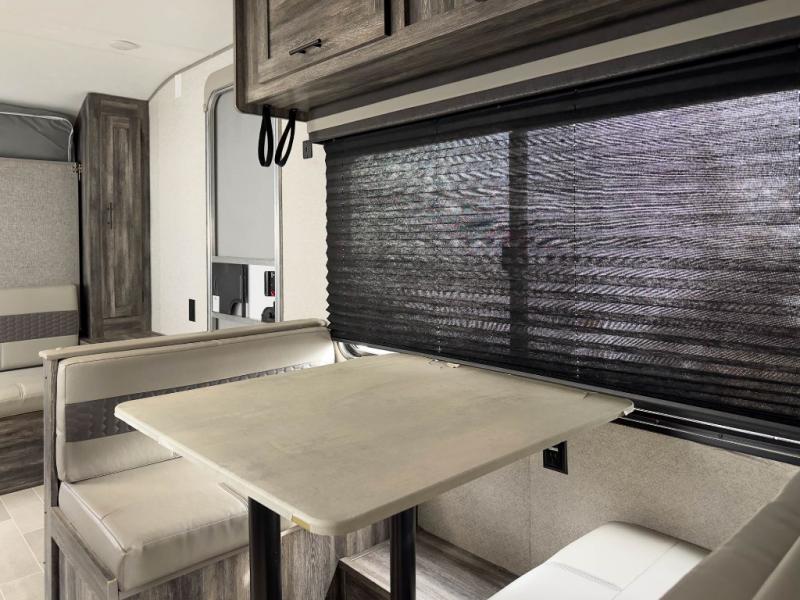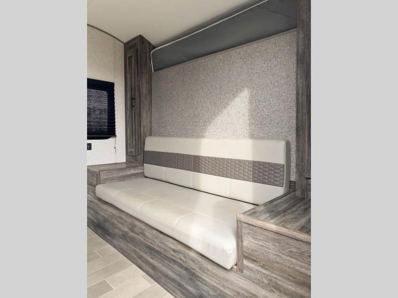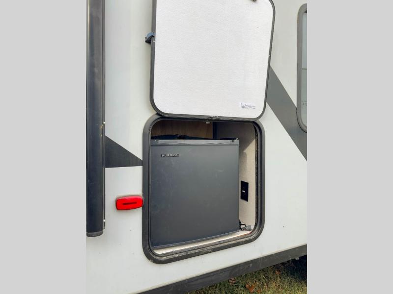 Let all of your adventures be full of fun and excitement with this Wildwood FSX Platinum Edition travel trailer! Keep lots of gear stored away in the exterior pass-through storage compartment so that you can keep the interior free from clutter. The bathroom linen closet will hold onto your towels so that they are readily available when you shower, and the 11-cubic foot refrigerator will keep your perishable items cold throughout your trip so that they are ready to be used for meals. You'll enjoy the functionality of the Murphy bed up front because it can fold away to reveal a sofa with end tables that you can use to lounge on during the day.