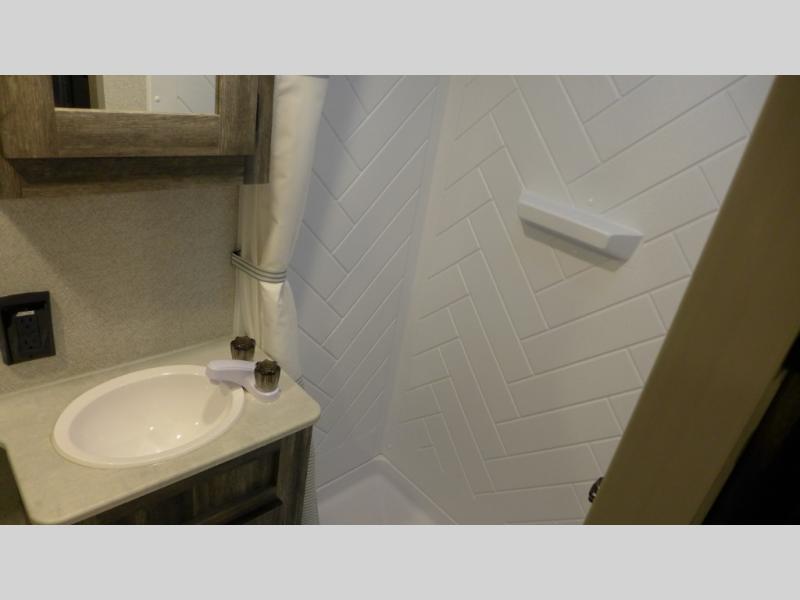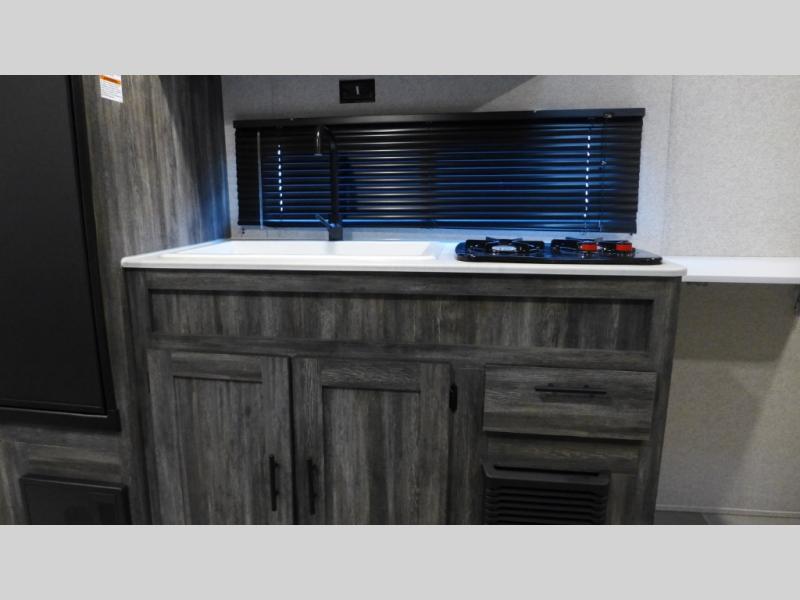 The Forest River Wildwood FSX travel trailer and toy hauler comes with a Best-In-Class Package that truly is the best! Some of the features you'll find in this package are the enclosed Accessibelly, the large-capacity 11-cubic foot refrigerator, the seamless countertops, the outside hot/cold shower, the power awning with adjustable legs and LED lights, and the preparation for Wi-Fi. You'll also notice that the Wildwood FSX provides you with exceptional views of your surroundings with its largest-in-class opening panoramic windows, and the herringbone pattern luxury extra-thick vinyl flooring is an excellent base that will be easy to keep clean. Some other notable features are the TUFFCOAT scratch-resistant exterior paint, the tablet-compatible USB ports, and the residential high-rise kitchen faucet. These Platinum Edition trailers also come with smooth fiberglass exterior walls, a .040 smooth front metal plate, a Platinum graphics package, and upgraded steel wheels.