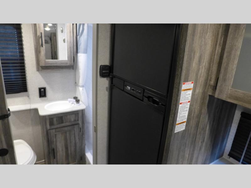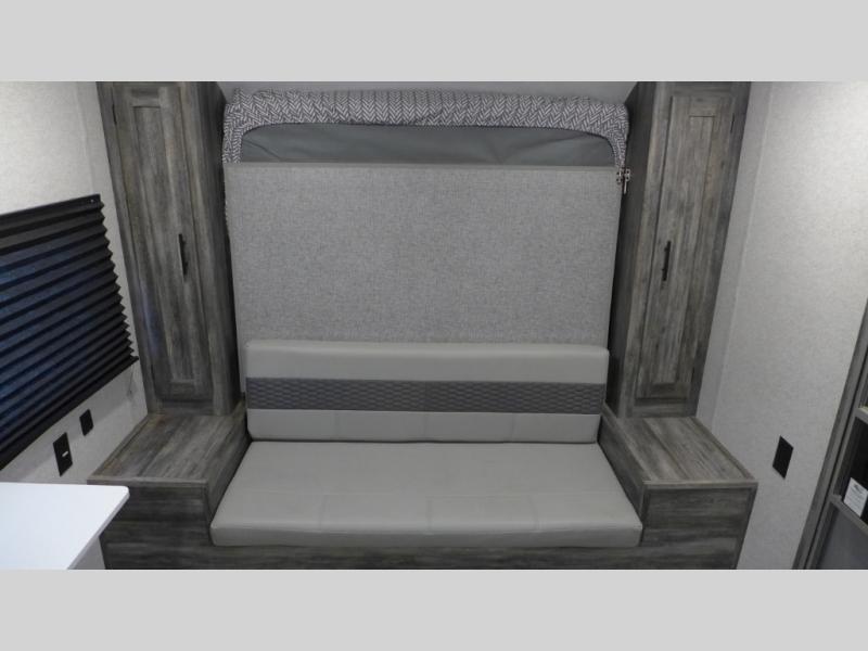 Let all of your adventures be full of fun and excitement with this Wildwood FSX Platinum Edition travel trailer! Keep lots of gear stored away in the exterior pass-through storage compartment so that you can keep the interior free from clutter. The bathroom linen closet will hold onto your towels so that they are readily available when you shower, and the 11-cubic foot refrigerator will keep your perishable items cold throughout your trip so that they are ready to be used for meals. You'll enjoy the functionality of the Murphy bed up front because it can fold away to reveal a sofa with end tables that you can use to lounge on during the day.