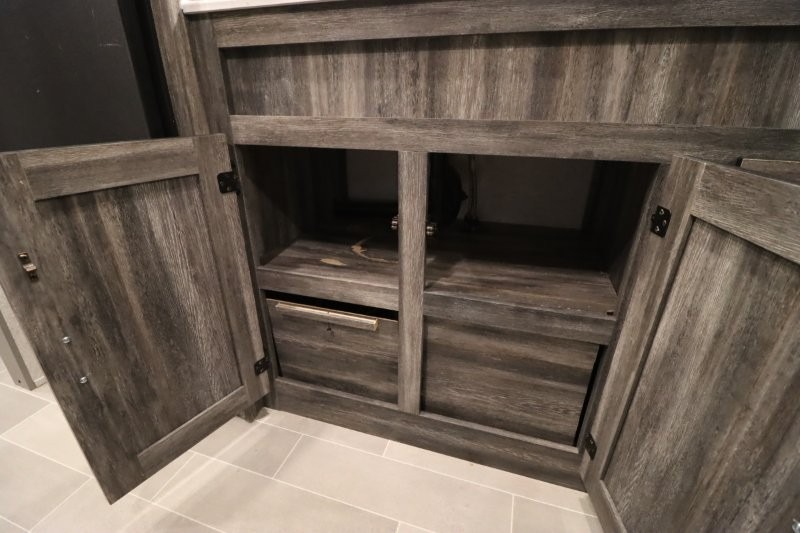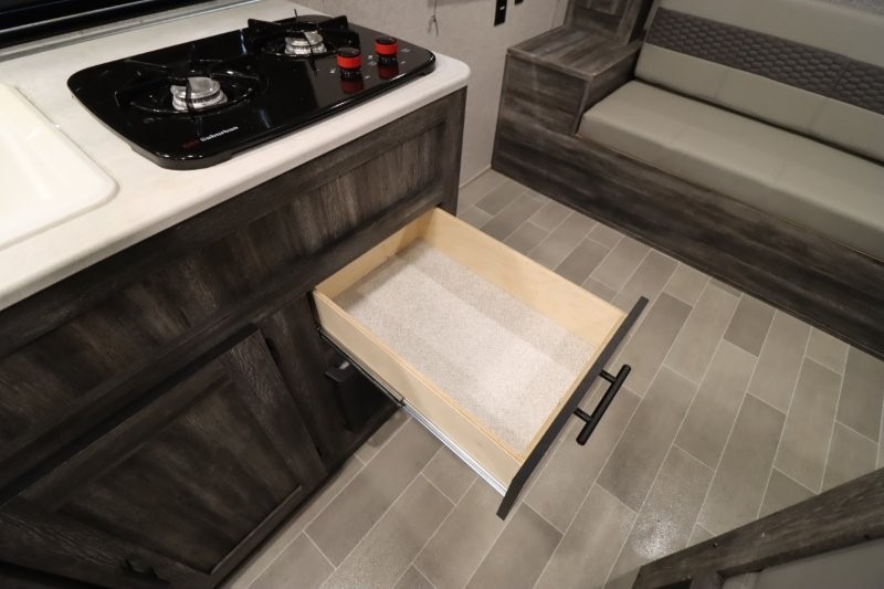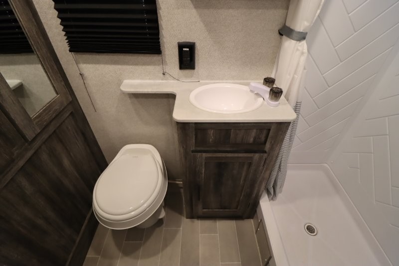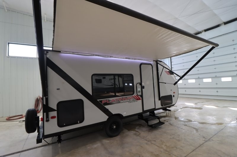 The Forest River Wildwood FSX travel trailer and toy hauler comes with a Best-In-Class Package that truly is the best! Some of the features you'll find in this package are the enclosed Accessibelly, the large-capacity 11-cubic foot refrigerator, the seamless countertops, the outside hot/cold shower, the power awning with adjustable legs and LED lights, and the preparation for Wi-Fi. You'll also notice that the Wildwood FSX provides you with exceptional views of your surroundings with its largest-in-class opening panoramic windows, and the herringbone pattern luxury extra-thick vinyl flooring is an excellent base that will be easy to keep clean. Some other notable features are the TUFFCOAT scratch-resistant exterior paint, the tablet-compatible USB ports, and the residential high-rise kitchen faucet. These Platinum Edition trailers also come with smooth fiberglass exterior walls, a .040 smooth front metal plate, a Platinum graphics package, and upgraded steel wheels.