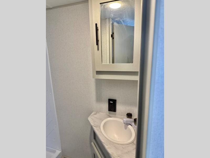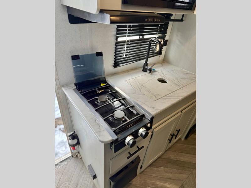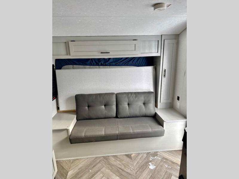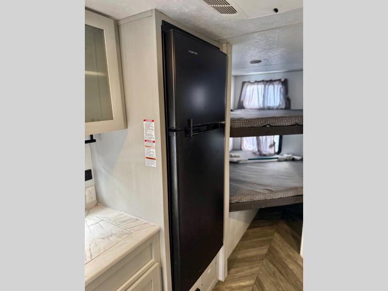 Let all of your adventures be wild with this Wildwood FSX travel trailer! The U-shaped dinette rests upon a single slide so that it can move out of the way and allow you to cook freely in the kitchen. You'll appreciate having an additional lounge spot on the sofa when the Murphy bed is folded away during the day, and for fun meal prep in the great outdoors, simply walk outside to the outdoor griddle and refrigerator where you can grill up some chicken and veggies for dinner. You can also travel confidently knowing that everyone will have a comfortable place to sleep because of the double-size bunks that have been included.