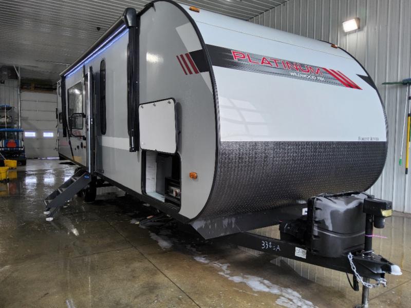 The Forest River Wildwood FSX travel trailer and toy hauler comes with a Best-In-Class Package that truly is the best! Some of the features you'll find in this package are the enclosed Accessibelly, the large-capacity 11-cubic foot refrigerator, the seamless countertops, the outside hot/cold shower, the power awning with adjustable legs and LED lights, and the preparation for Wi-Fi. You'll also notice that the Wildwood FSX provides you with exceptional views of your surroundings with its largest-in-class opening panoramic windows, and the herringbone pattern luxury extra-thick vinyl flooring is an excellent base that will be easy to keep clean. Some other notable features are the TUFFCOAT scratch-resistant exterior paint, the tablet-compatible USB ports, and the residential high-rise kitchen faucet. These Platinum Edition trailers also come with smooth fiberglass exterior walls, a .040 smooth front metal plate, a Platinum graphics package, and upgraded steel wheels.