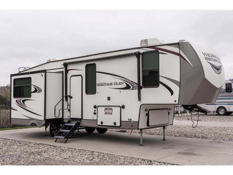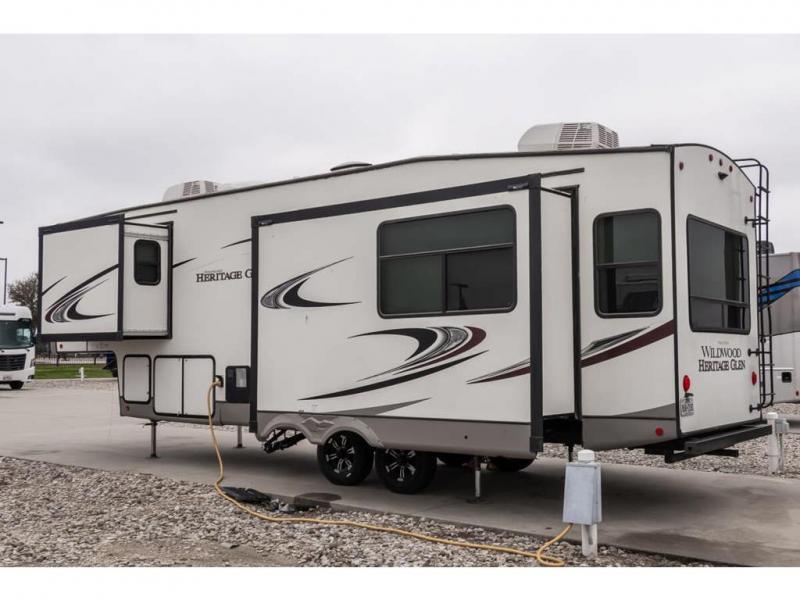 Your adventures will be amazing in the Forest River Wildwood Heritage Glen travel trailers and fifth wheels! The residential interiors are inviting and spacious, and the upscale amenities will make you feel right at home. The exterior has a high-definition graphics package, an upgraded insulation package, a PVC roof membrane, a Texas-size pass-through storage, heated/enclosed dump valves and underbelly, and a shaded pet tether. The XL Max-tint panoramic window package is going to provide you with the very best views of your surroundings, and the Wildwood Heritage Glen has been prepped for a back-up camera and roof-mounted solar panels.