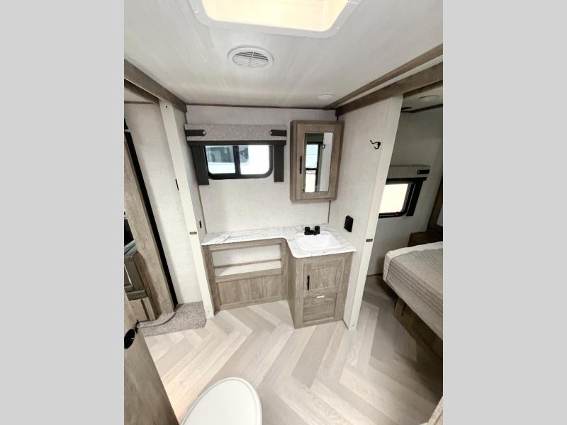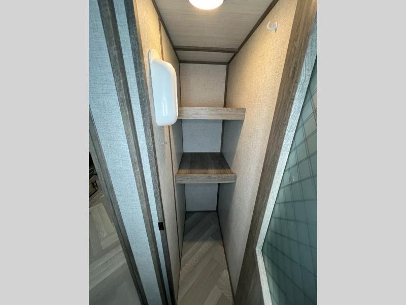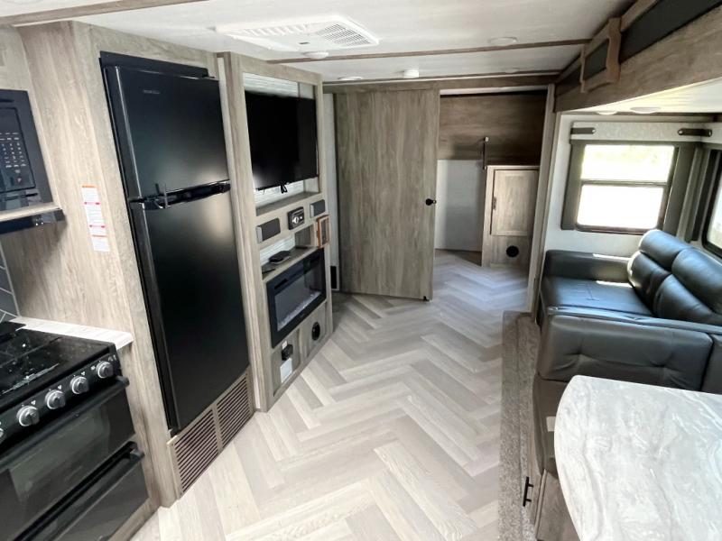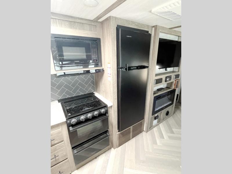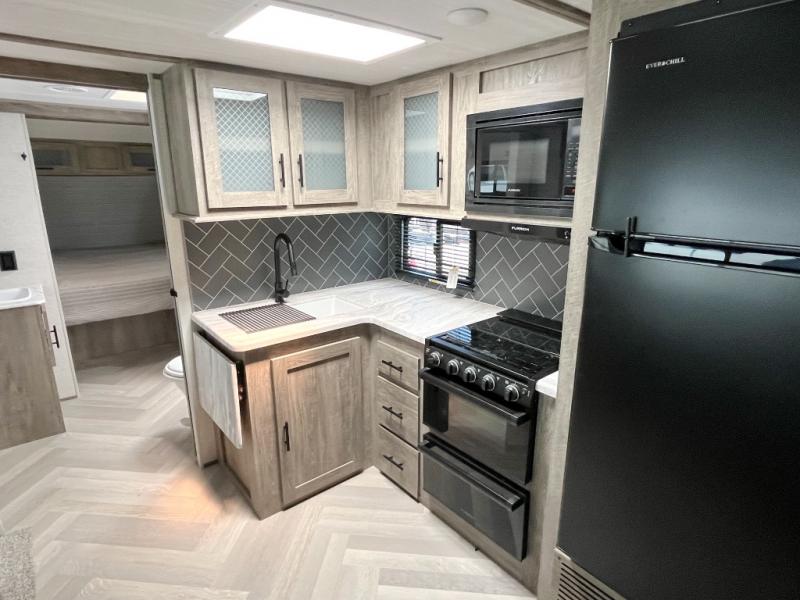 The Wildwood Heritage Glen Hyper-Lyte travel trailer by Forest River offers stability with a wide stance axle system, easy setup with a power tongue jack with LED docking light, and safe entry with the Step Above aluminum entry steps plus the XL Lend-a-Hand entry grab handle to the main entrance. The XL Max-Tint panoramic window(s) in the main slide bring the outside inside, plus the kitchen offers a recessed glass stove top cover, a Midnight glass range hood and microwave, plus more. You will also find a back-up camera and roof-mounted solar panel prep. There is so much more to love about these travel trailers, choose your favorite today!