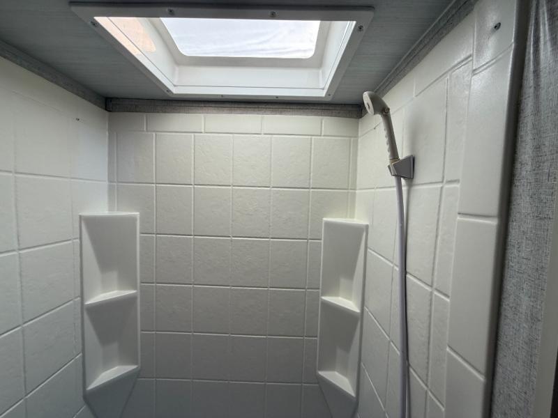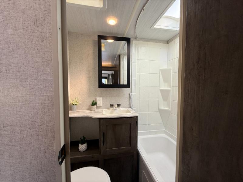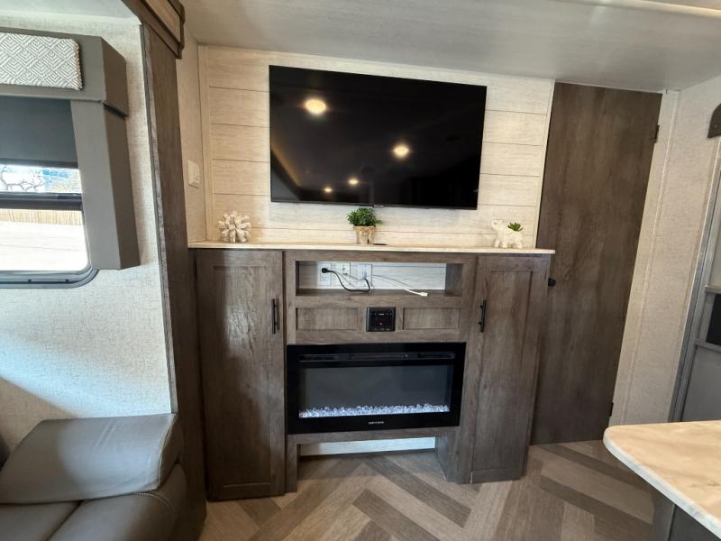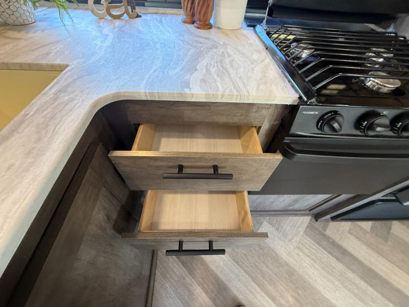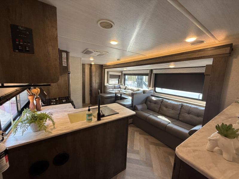 The Forest River Wildwood X-Lite travel trailers are comfortable enough to make any destination feel like home! The Wildwood X-Lite has a one-piece SuperFlex roof, a powder-coated I-beam frame, nitrogen-filled tires, a triple-seal slide system, and a cambered chassis as the base for all of its luxurious additions. Within the reliable construction, you will find excellent interior amenities, like a herringbone luxury vinyl flooring, a shiplap wall board, a huge kitchen window, USB ports, a Bluetooth stereo, and upgraded designer furniture. The Wildwood X-Lite also comes with a pass-through storage compartment so that you can make the most of every adventure by bringing along the essentials.