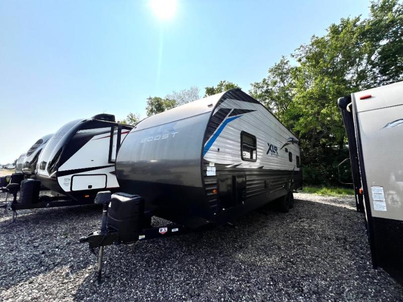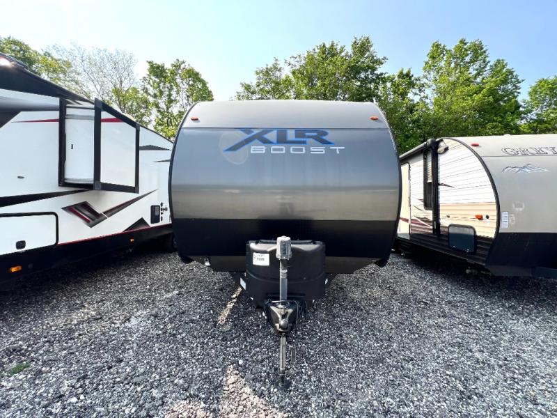 The possibilities are endless with any one of these Forest River XLR Boost toy hauler travel trailers or fifth wheels! They are designed for an "action camping" lifestyle with a 102" wide body to fit your side by sides, kayaks, or any other type of fun toys. You will experience a fresh sense of camping with complete comforts like a high definition LED TV, walk-in showers, oil and gas resistant residential linoleum, and a 5,000 BTU fireplace. There is a wide variety of models to choose from with either open or closed garage spaces and each weight/length was taken into consideration to fit most common trucks. The body armor underbelly has PVC laminated to the foil radiant barrier insulation for better protection and the 100 gallon fresh holding tank capacity is the best-in-class. Come find your perfect model today!
