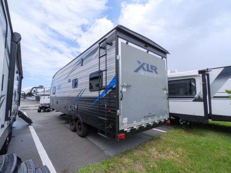 The possibilities are endless with any one of these Forest River XLR Boost toy hauler travel trailers or fifth wheels! They are designed for an "action camping" lifestyle with a 102" wide body to fit your side by sides, kayaks, or any other type of fun toys. You will experience a fresh sense of camping with complete comforts like a high definition LED TV, walk-in showers, oil and gas resistant residential linoleum, and a 5,000 BTU fireplace. There is a wide variety of models to choose from with either open or closed garage spaces and each weight/length was taken into consideration to fit most common trucks. The body armor underbelly has PVC laminated to the foil radiant barrier insulation for better protection and the 100 gallon fresh holding tank capacity is the best-in-class. Come find your perfect model today!