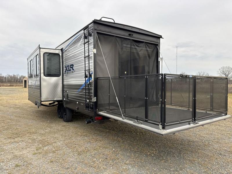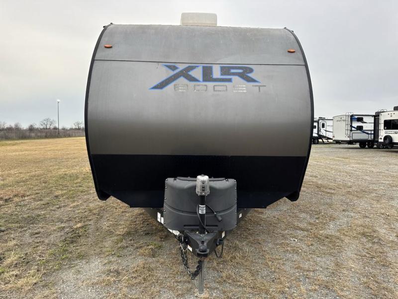 The possibilities are endless with any one of these Forest River XLR Boost toy hauler travel trailers or fifth wheels! They are designed for an "action camping" lifestyle with a 102" wide body to fit your side by sides, kayaks, or any other type of fun toys. You will experience a fresh sense of camping with complete comforts like a high definition LED TV, walk-in showers, oil and gas resistant residential linoleum, and a 5,000 BTU fireplace. There is a wide variety of models to choose from with either open or closed garage spaces and each weight/length was taken into consideration to fit most common trucks. The body armor underbelly has PVC laminated to the foil radiant barrier insulation for better protection and the 100 gallon fresh holding tank capacity is the best-in-class. Come find your perfect model today!