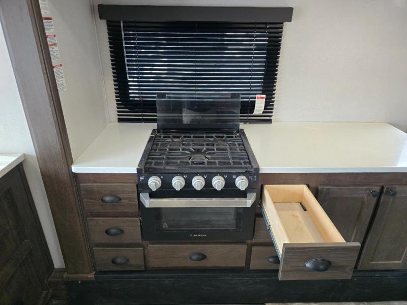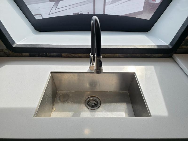 With any XLR Nitro toy hauler fifth wheel by Forest River, you can load your toys up the weatherproof insulated ramp door onto an insulated garage floor with 5,000 lb. cargo tie downs to secure your toys while traveling. The retractable panoramic screen will allow fresh air to flow inside and the 30 gallon fuel station will keep the fun going! Each is built with Xtra engineering which means a stronger platform to handle the adverse conditions of Mother Nature on extreme terrain, a radius roof for more interior space, vacuum-boned aluminum framed sidewalls, laminated and insulated slide room walls, plus a fiberglass front cap with an automotive windshield for a sleek exterior and great views from the interior. There are hardwood cabinet doors, black cabinet hardware, solid surface kitchen countertops, and living area dimmable lighting to mention a few more highlights. Start exploring your active side, choose a XLR Nitro today!