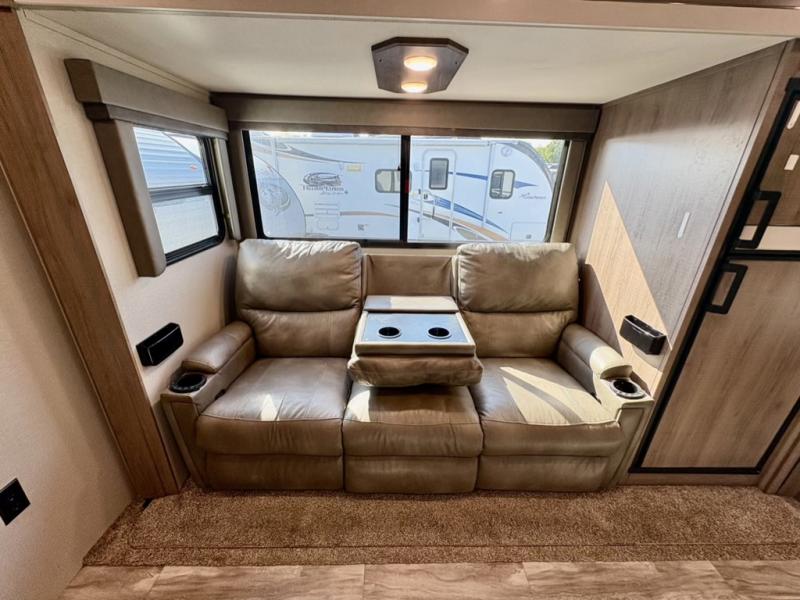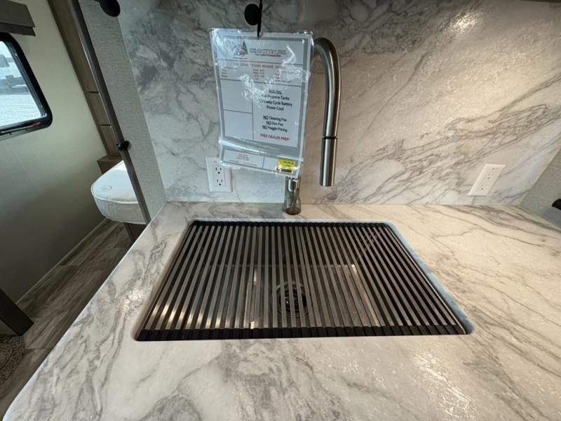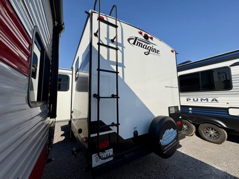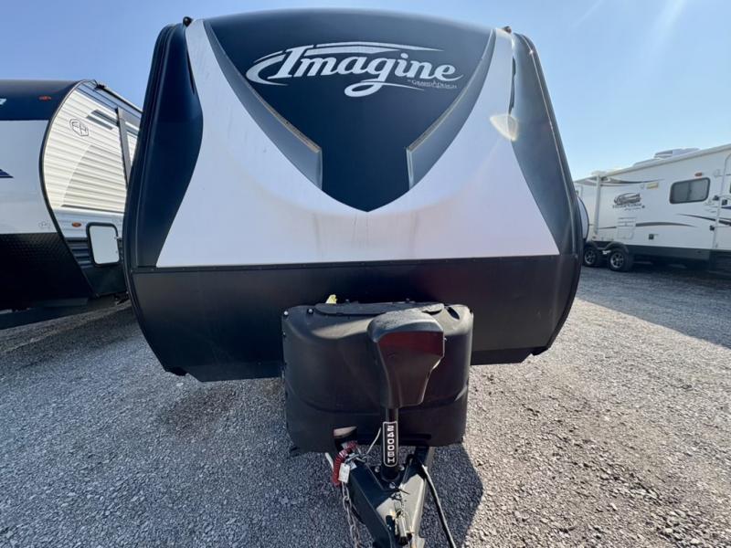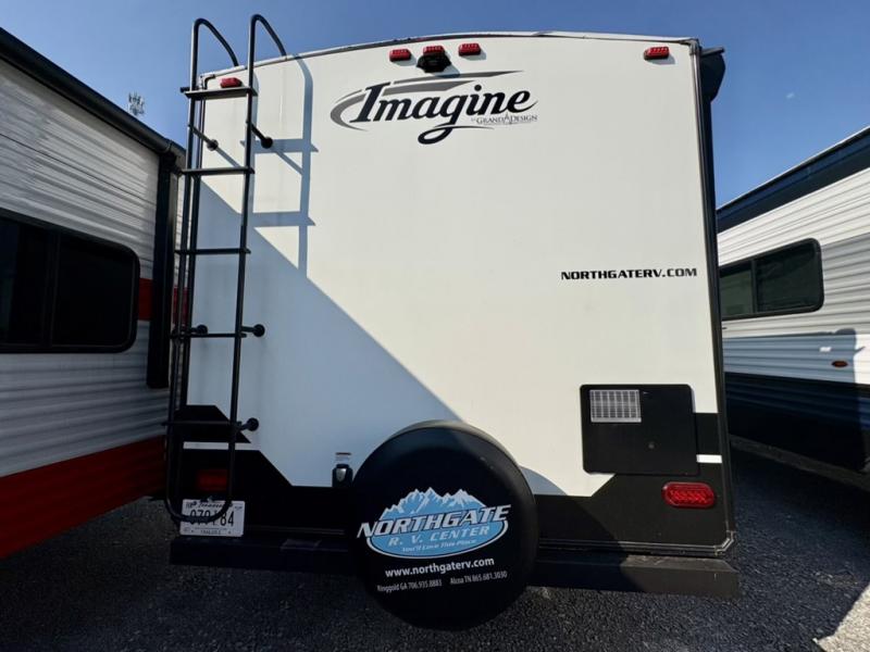 With any Imagine by Grand Design the construction includes a laminated aluminum framed main floor, rear wall, side walls, roof and end walls in the slide rooms and floors, plus a one-piece roof membrane giving you years of lightweight towing to your favorite destinations. Best in class storage is found in the exclusive drop frame unobstructed pass through storage, and the Universal Docking station offers an all-in-one location for utilities and hookups, plus you will find industry leading tank capacities and extended season camping with the mandatory four-season protection package. Inside you will experience residential cabinetry and a pull-down sprayer kitchen faucet, upgraded residential furniture and countertops, plus much more with an 81" radius ceiling for a spacious interior. Choose your favorite Imagine today, and start adventuring in a lightweight and comfortable trailer!