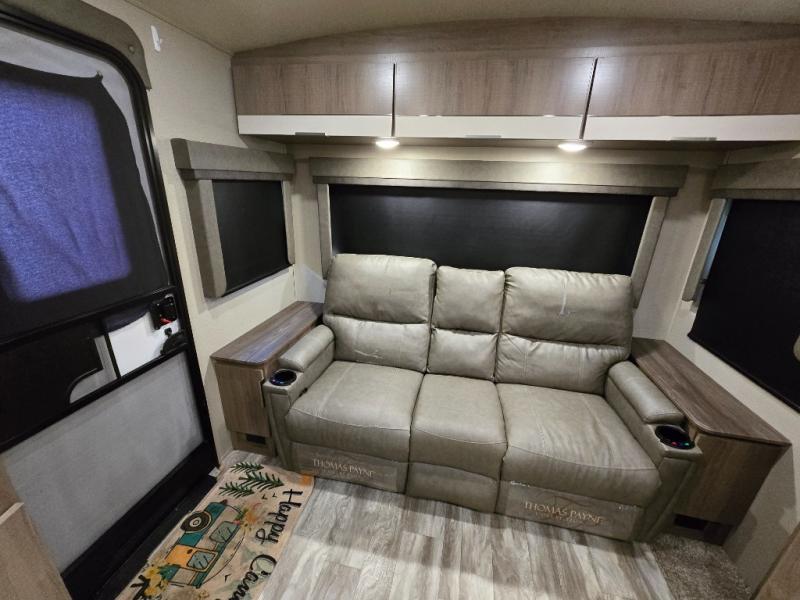 With any Imagine by Grand Design the construction includes a laminated aluminum framed main floor, rear wall, side walls, roof and end walls in the slide rooms and floors, plus a one-piece roof membrane giving you years of lightweight towing to your favorite destinations. Best in class storage is found in the exclusive drop frame unobstructed pass through storage, and the Universal Docking station offers an all-in-one location for utilities and hookups, plus you will find industry leading tank capacities and extended season camping with the mandatory four-season protection package. Inside you will experience residential cabinetry and a pull-down sprayer kitchen faucet, upgraded residential furniture and countertops, plus much more with an 81" radius ceiling for a spacious interior. Choose your favorite Imagine today, and start adventuring in a lightweight and comfortable trailer!