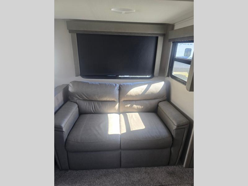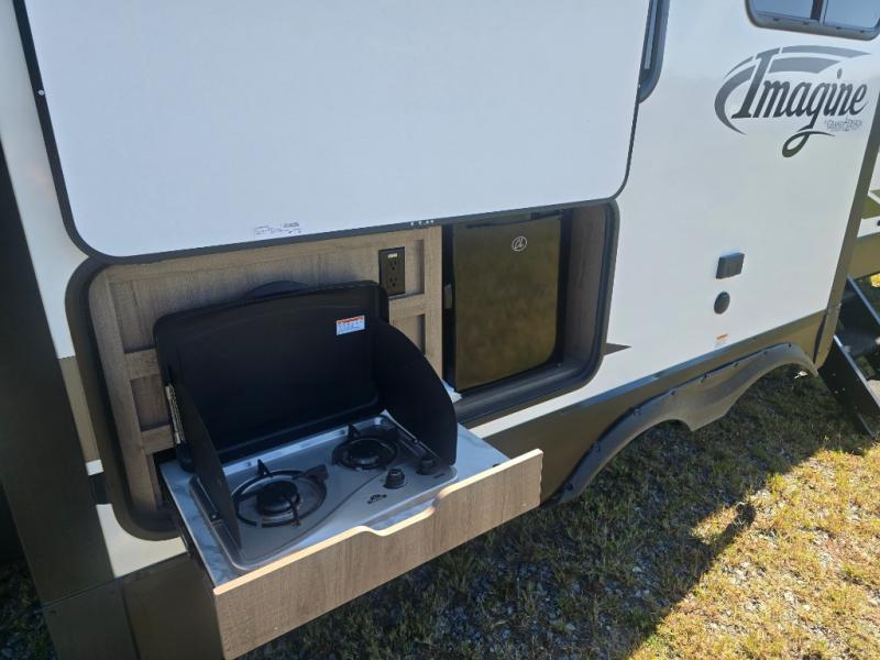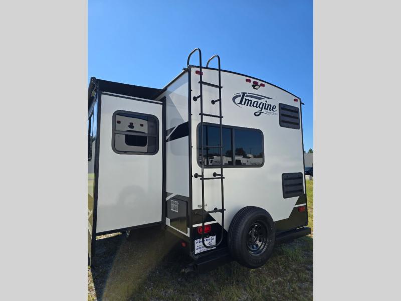 With any Imagine by Grand Design the construction includes a laminated aluminum framed main floor, rear wall, side walls, roof and end walls in the slide rooms and floors, plus a one-piece roof membrane giving you years of lightweight towing to your favorite destinations. Best in class storage is found in the exclusive drop frame unobstructed pass through storage, and the Universal Docking station offers an all-in-one location for utilities and hookups, plus you will find industry leading tank capacities and extended season camping with the mandatory four-season protection package. Inside you will experience residential cabinetry and a pull-down sprayer kitchen faucet, upgraded residential furniture and countertops, plus much more with an 81" radius ceiling for a spacious interior. Choose your favorite Imagine today, and start adventuring in a lightweight and comfortable trailer!