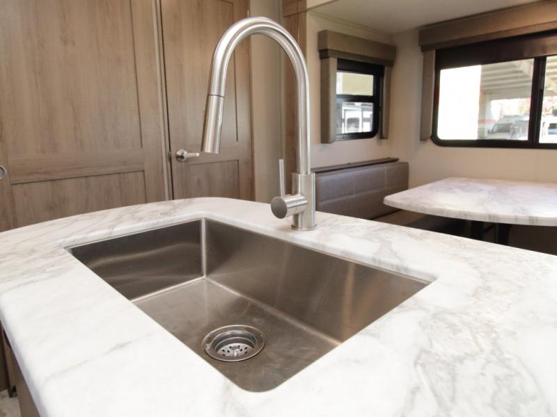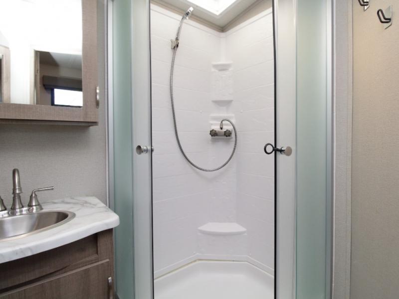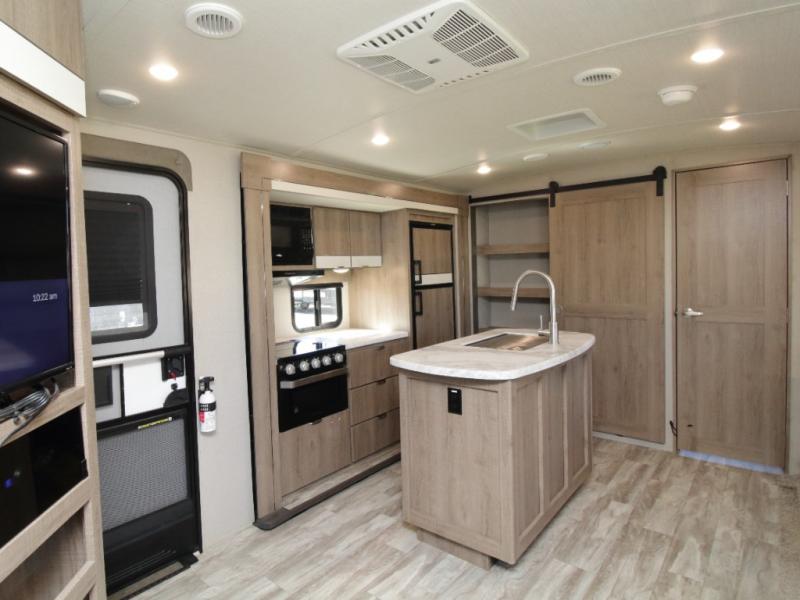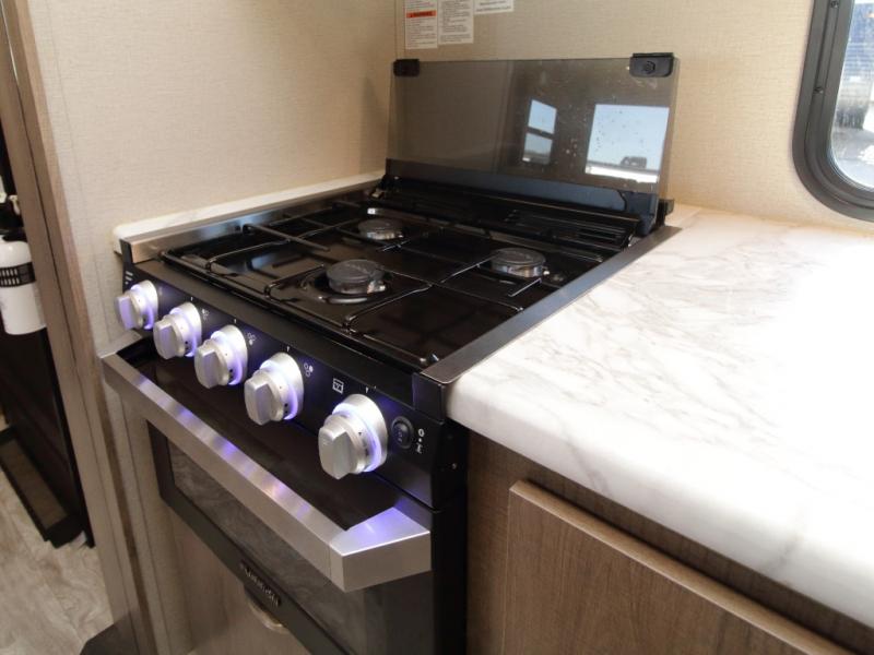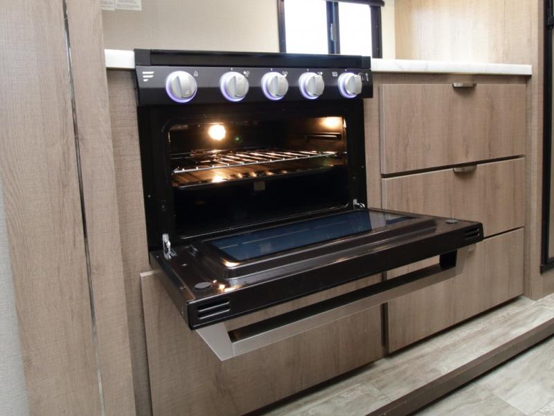 Enjoy year-round comfort with the Four-Season Protection Package, designed for extended camping in any climate. Inside, you’ll find residential cabinetry, upgraded furniture, and premium countertops, all highlighted by the 81" radius ceiling that creates a bright, spacious feel.