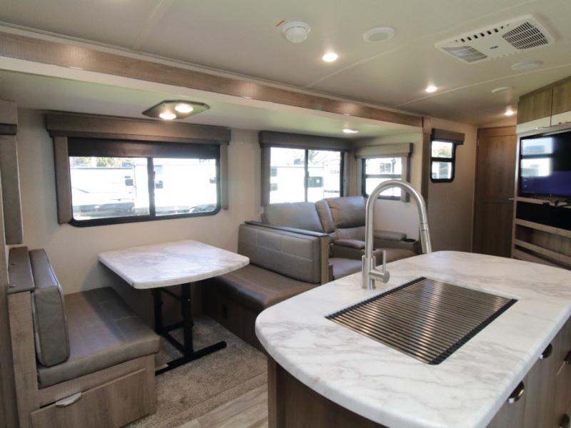 With sleeping space for up to eight people, the Imagine 3250BH is ideal for family trips, group getaways, or full-season camping. The thoughtful floorplan ensures everyone has their own space, while large windows throughout the trailer fill the interior with natural light.