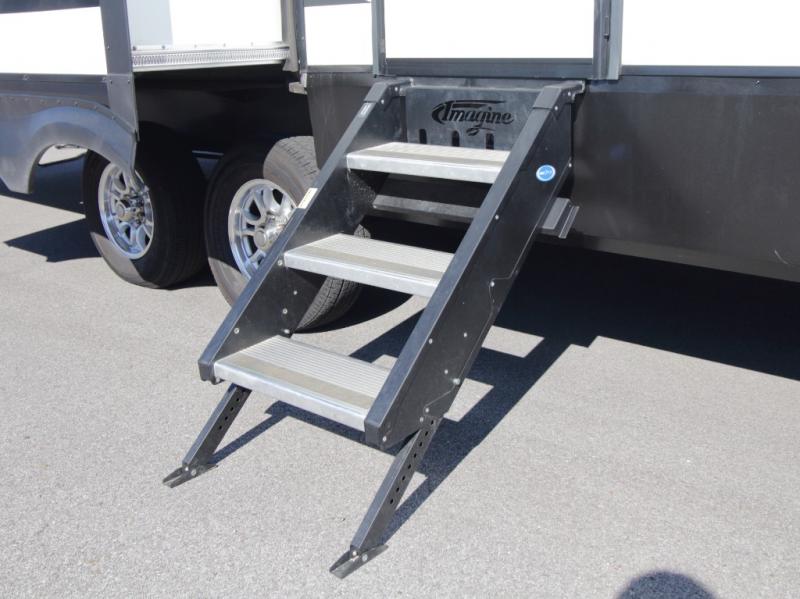 Every Imagine travel trailer is constructed with laminated aluminum framing on the sidewalls, floor, roof, and rear wall for lasting strength and lightweight towing. The one-piece roof membrane, drop-frame pass-through storage, and Universal Docking Station make setup, storage, and maintenance simple.