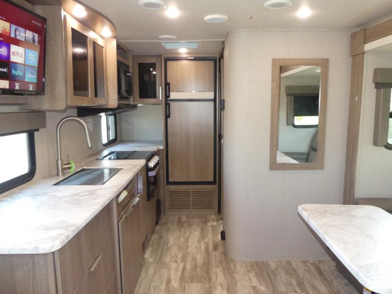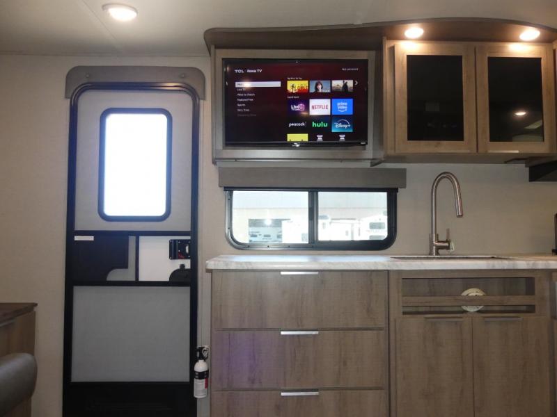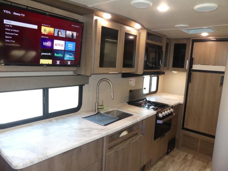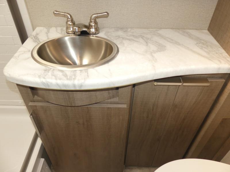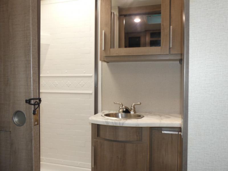 A couple will love this easy to tow and store trailer which includes a single slide out for more interior floor space! There is a sofa up front to utilize during the daytime and at night the queen Murphy bed can easily be set up for a good night's rest after a hike. And you will find wardrobe and drawer storage for your things. The theater dinette offers a great place to relax and dine thanks to the removable table, or choose a booth dinette option if you prefer that type of seating. The full bathroom allows you to skip the public facilities, and the kitchen offers lots of counter space, appliances to make warm meals, and a stainless steel sink to keep the dishes clean. There are more features to enjoy, make your reservations now!