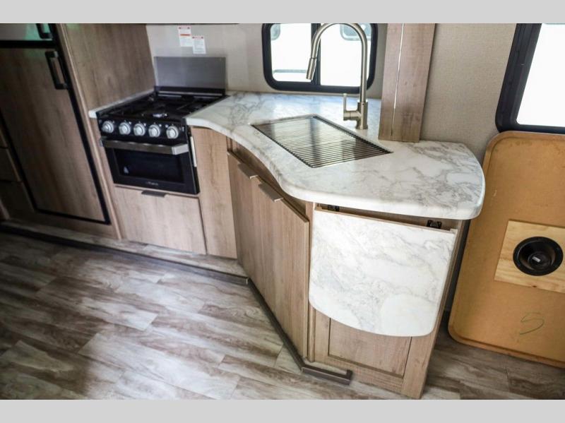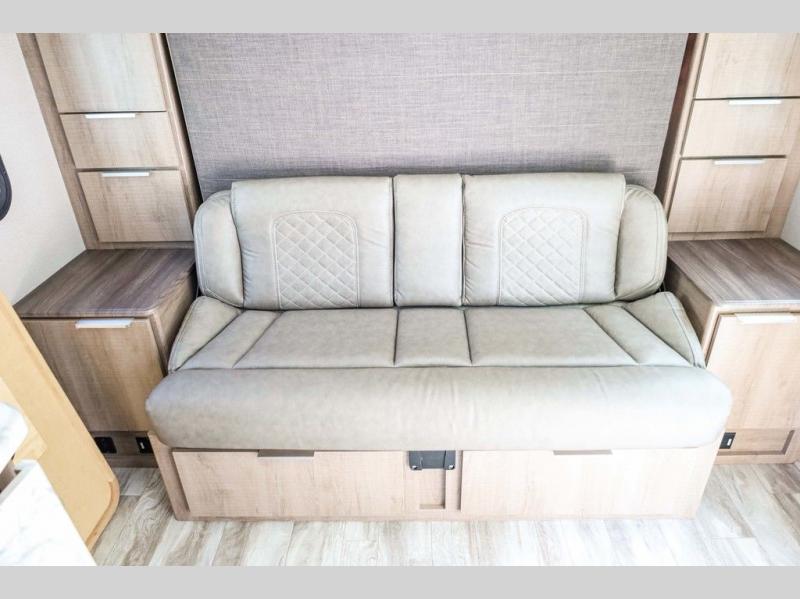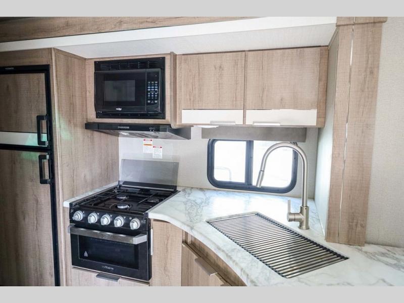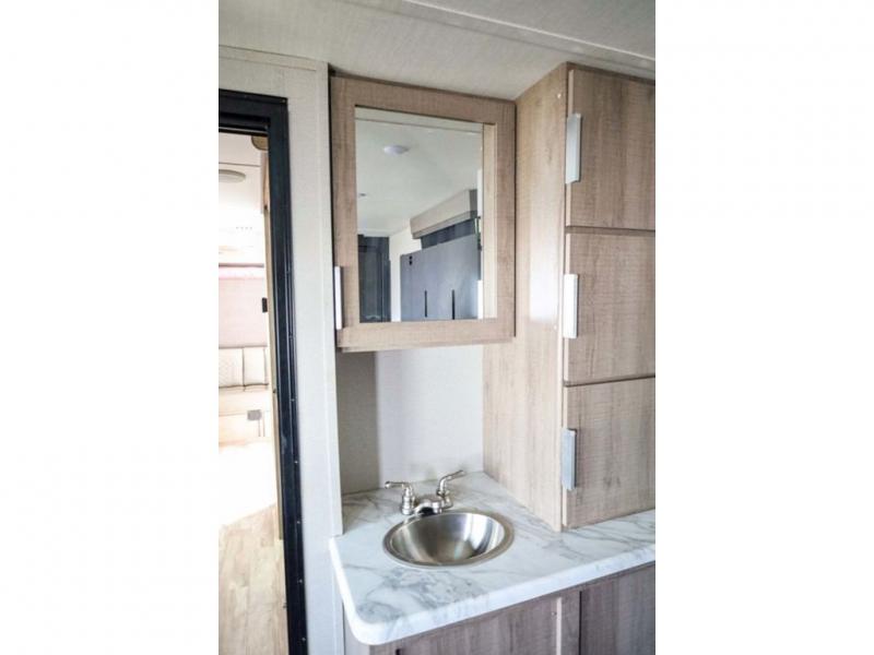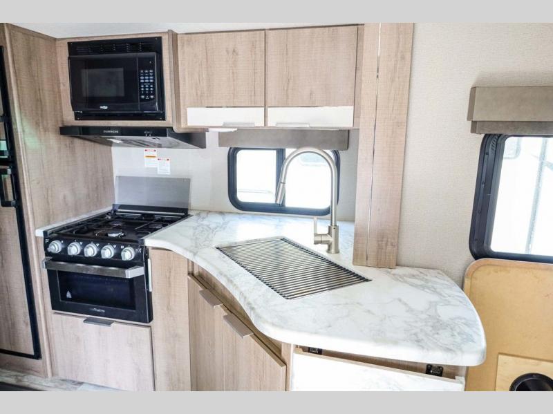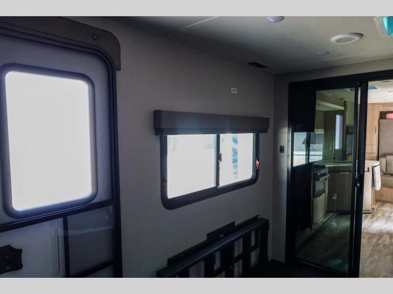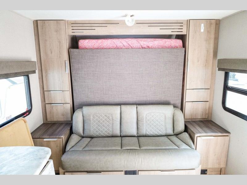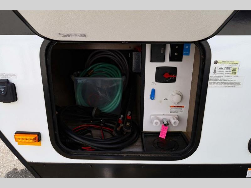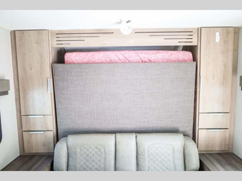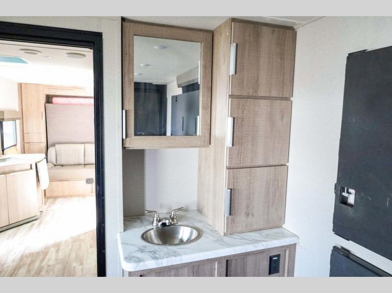 This toy hauler allows you to make your camping trip even better with your favorite outdoor toys. Since the 10' separate garage has a 1,500 lb. carrying capacity, you can bring along the four wheeler and the kayak! After you've worked up your appetite from being outside all day, whip up dinner on the three burner range or make something quick in the microwave oven, and the flip-up countertop will provide extra space to cut fresh fruit for the kids. You'll find a convenient sink in the garage so you can wash up before bed and the full bath includes a walk-in shower for compete comfort. This model has you covered when it's time to get some shut-eye. The garage features a convertible sleeping system that can convert into a queen bed or bunk beds, and the front Murphy bed in the main area is both comfortable and versatile!