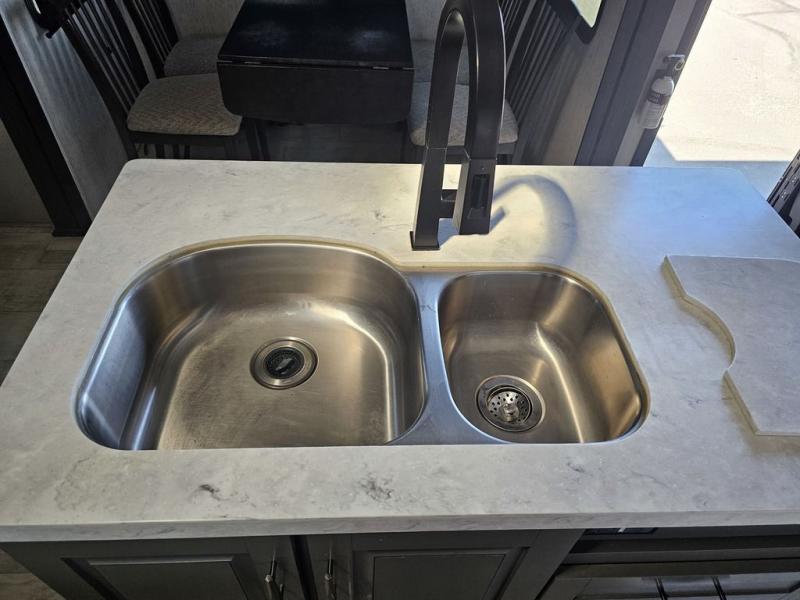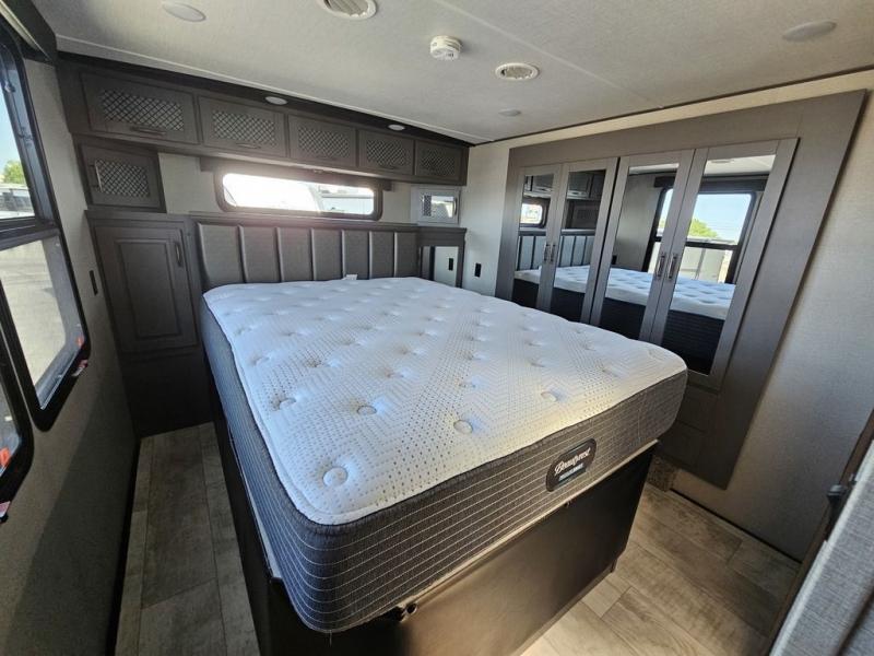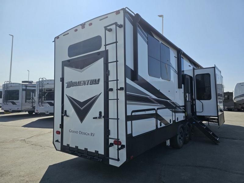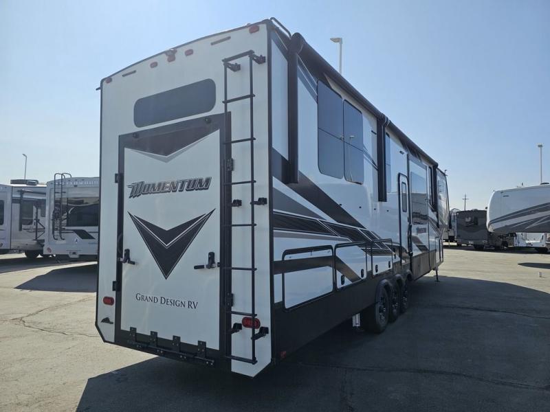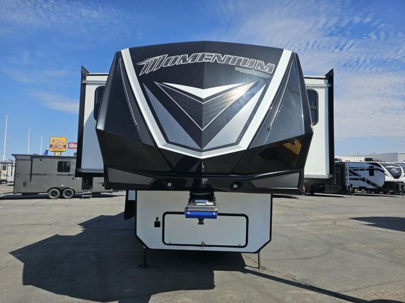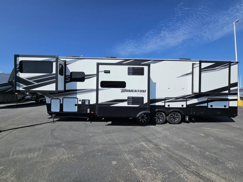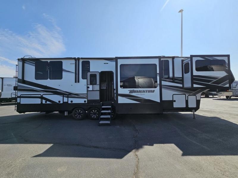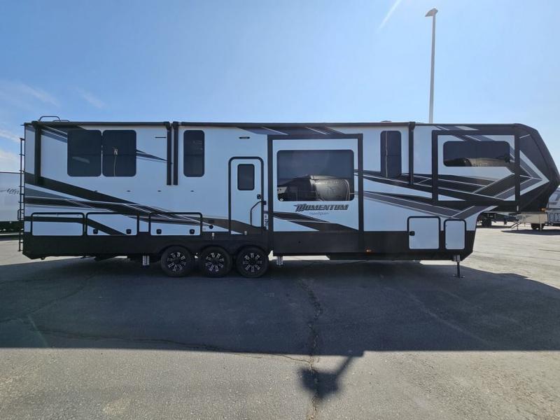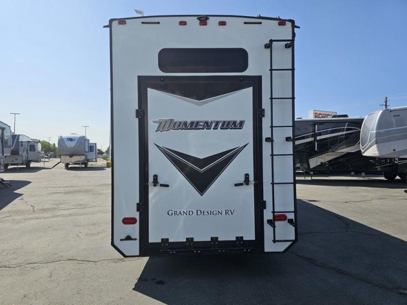 The very best adventures are waiting for you with the Grand Design Momentum toy hauler! The Momentum combines extreme play with extraordinary living so that you can have the best of both worlds. You won't have to miss out on any of your favorite features from home because the Momentum has just about everything. With the Weather-Tek insulation, you won't have to let anything hold you back from getting out and taking an adventure during any season, and the Tuff Ply gas-and-oil-resistant garage flooring is a quality base for your toys. The flush-mount tie-downs rated for 2,500 LBS will keep your gear in place as you travel, and there is a protective diamond plate on the garage sidewalls for additional protection. Some of the options that you can choose to add to your Momentum are the Solitude solar system and Rockford Fosgate speaker package.