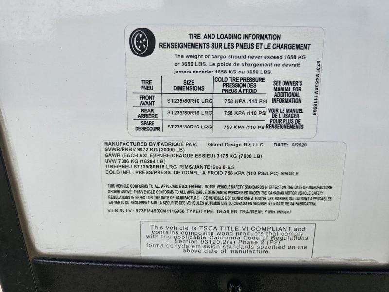 Used 2021 Grand Design Momentum 376THS Toy Hauler Fifth Wheel