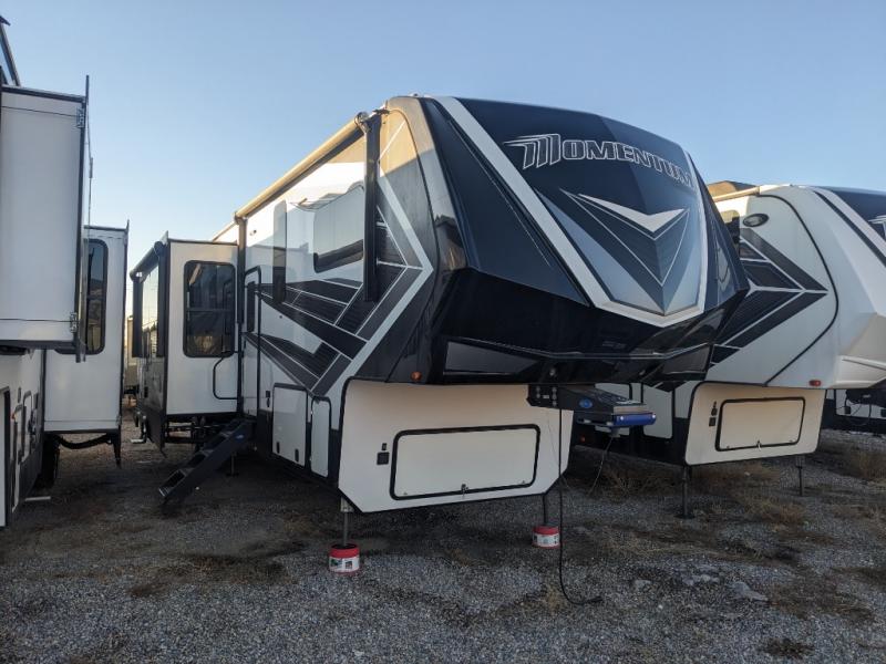 The very best adventures are waiting for you with the Grand Design Momentum toy hauler! The Momentum combines extreme play with extraordinary living so that you can have the best of both worlds. You won't have to miss out on any of your favorite features from home because the Momentum has just about everything. With the Weather-Tek insulation, you won't have to let anything hold you back from getting out and taking an adventure during any season, and the Tuff Ply gas-and-oil-resistant garage flooring is a quality base for your toys. The flush-mount tie-downs rated for 2,500 LBS will keep your gear in place as you travel, and there is a protective diamond plate on the garage sidewalls for additional protection. Some of the options that you can choose to add to your Momentum are the Solitude solar system and Rockford Fosgate speaker package.