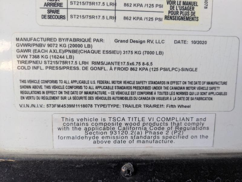 Used 2021 Grand Design Momentum 397TH Toy Hauler Fifth Wheel
