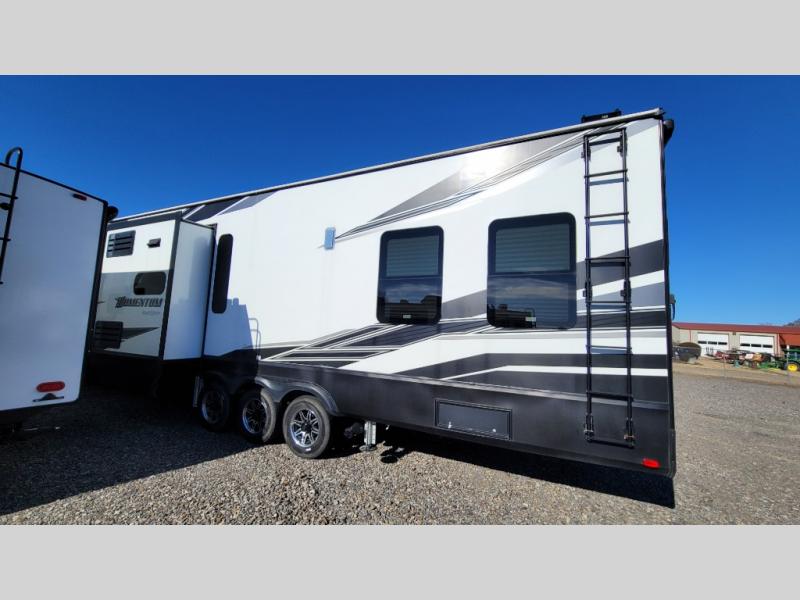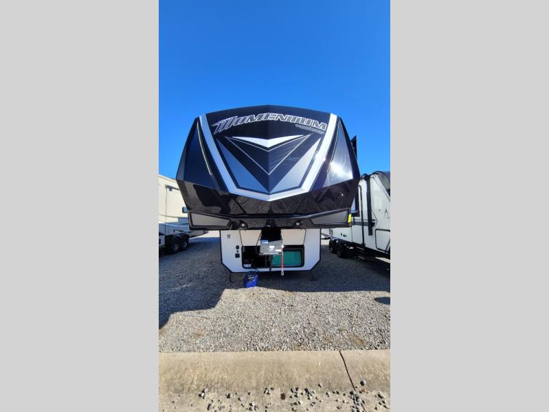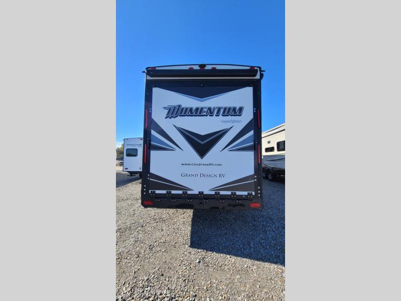 The very best adventures are waiting for you with the Grand Design Momentum toy hauler! The Momentum combines extreme play with extraordinary living so that you can have the best of both worlds. You won't have to miss out on any of your favorite features from home because the Momentum has just about everything. With the Weather-Tek insulation, you won't have to let anything hold you back from getting out and taking an adventure during any season, and the Tuff Ply gas-and-oil-resistant garage flooring is a quality base for your toys. The flush-mount tie-downs rated for 2,500 LBS will keep your gear in place as you travel, and there is a protective diamond plate on the garage sidewalls for additional protection. Some of the options that you can choose to add to your Momentum are the Solitude solar system and Rockford Fosgate speaker package.