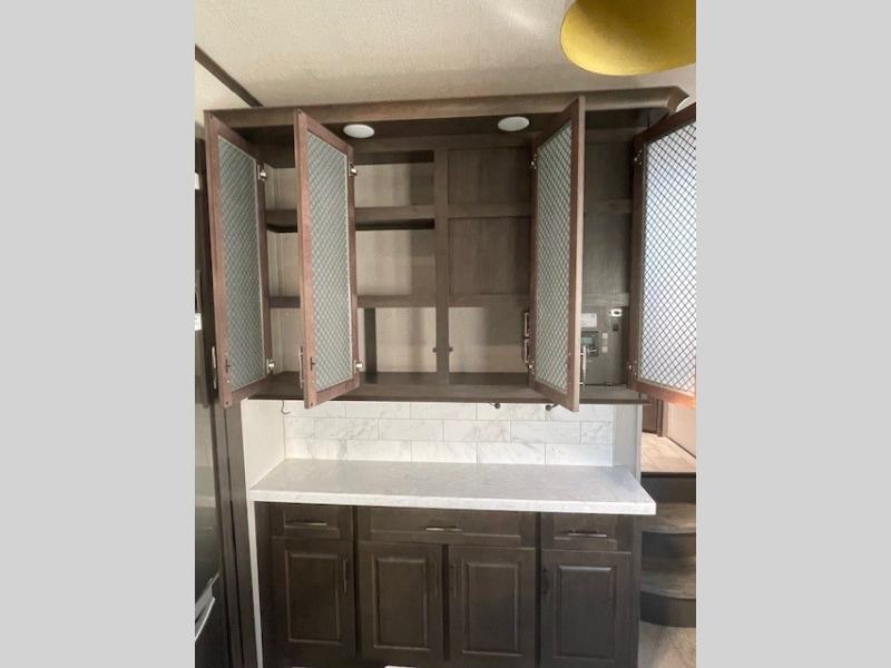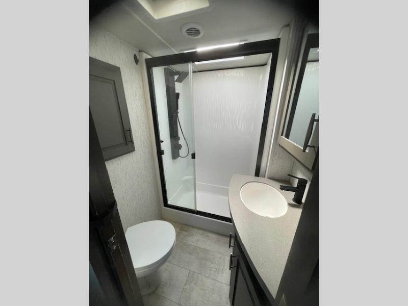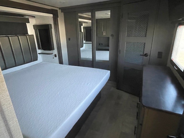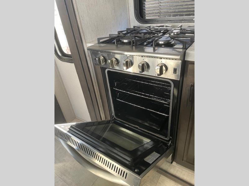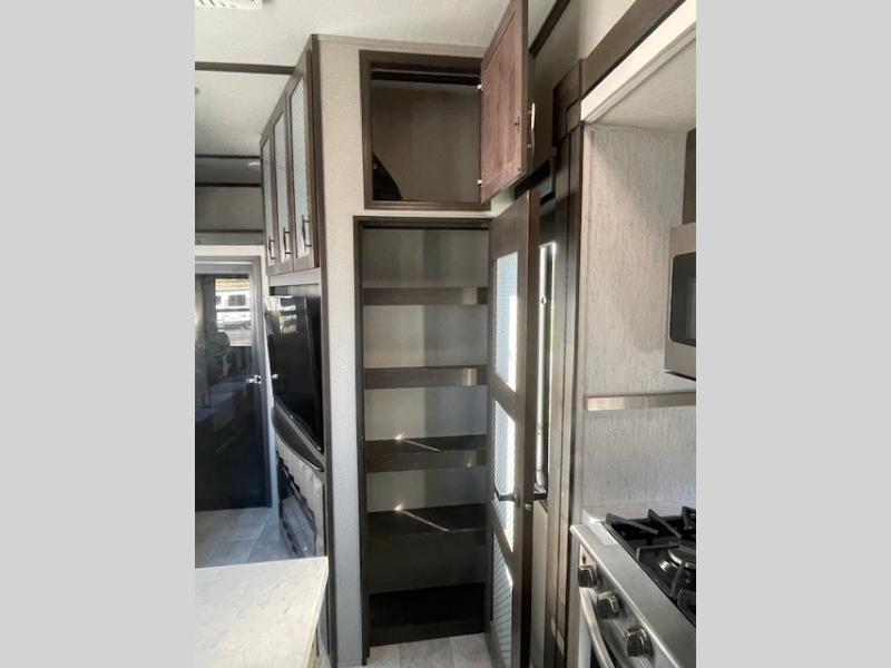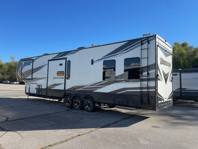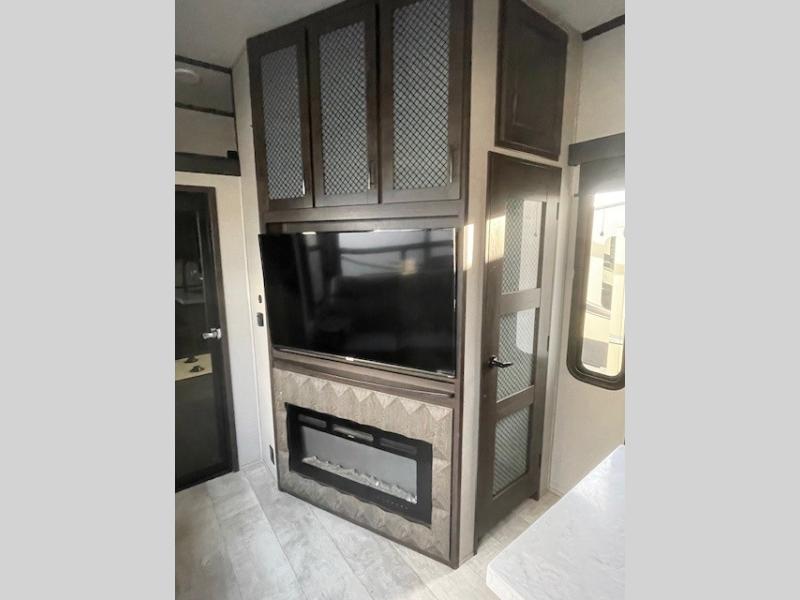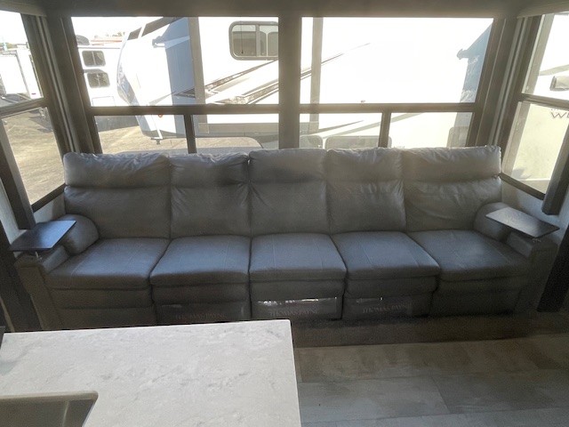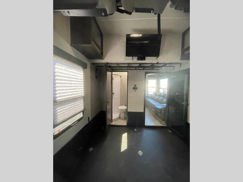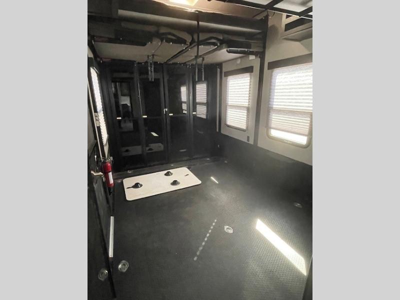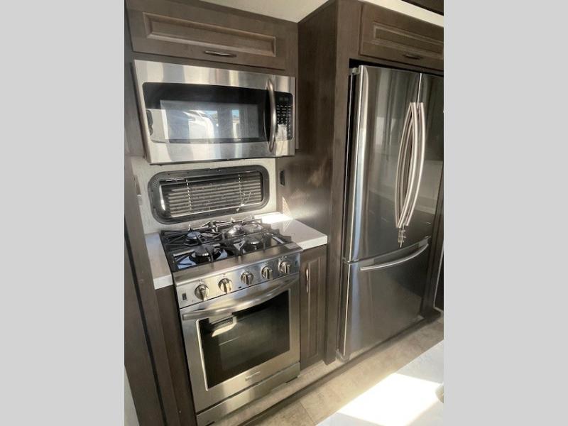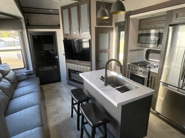 This Momentum toy hauler provides the maximum entertainment with its 49" LED TV in the living area, 32" LED TV in the private bedroom, 32" LED TV in the 12' 6" separate garage, and exterior LED TV! You can choose to add the optional Super Sofa which will create an amazingly comfortable area to sit down across from the electric fireplace. The two full bathrooms are one of the most impressive features found on this unit, and the three power awnings are another shocking addition. Within the kitchen, you'll be able to prepare all of your family's favorite dishes when you use the chef-inspired range and oven, and the window behind the range allows you to view the campsite while you cook. If you would prefer to have an 18-cubic foot RV refrigerator, you should check out model 397TH!