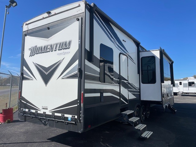 The very best adventures are waiting for you with the Grand Design Momentum toy hauler! The Momentum combines extreme play with extraordinary living so that you can have the best of both worlds. You won't have to miss out on any of your favorite features from home because the Momentum has just about everything. With the Weather-Tek insulation, you won't have to let anything hold you back from getting out and taking an adventure during any season, and the Tuff Ply gas-and-oil-resistant garage flooring is a quality base for your toys. The flush-mount tie-downs rated for 2,500 LBS will keep your gear in place as you travel, and there is a protective diamond plate on the garage sidewalls for additional protection. Some of the options that you can choose to add to your Momentum are the Solitude solar system and Rockford Fosgate speaker package.