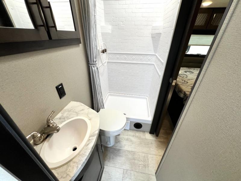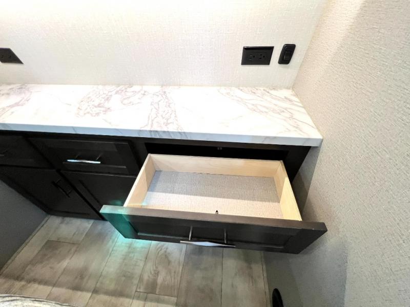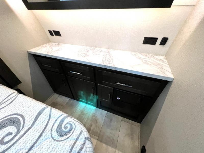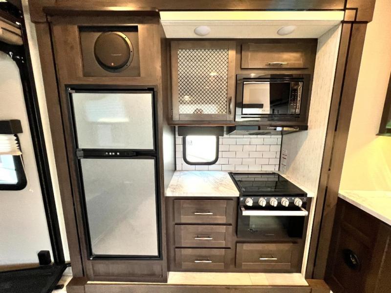 Are you looking for adventure and fun? The Momentum G-Class toy hauler by Grand Design will help you find it! You can explore during any season you choose with the Insulation Package that includes a heated and enclosed underbelly with suspended tanks, a high-capacity furnace, a moisture barrier floor enclosure, and cabinet-mounted heat ducts. Each model includes a 30-gallon fuel station with an interior and exterior gauge, a dovetail rear rend, and 2,500-LB tie-downs anchored into the chassis. Throughout the Momentum G-Class interior, you'll enjoy many comfortable features like large panoramic windows, a shower skylight, USB chargers in the bedroom, and residential cabinetry.